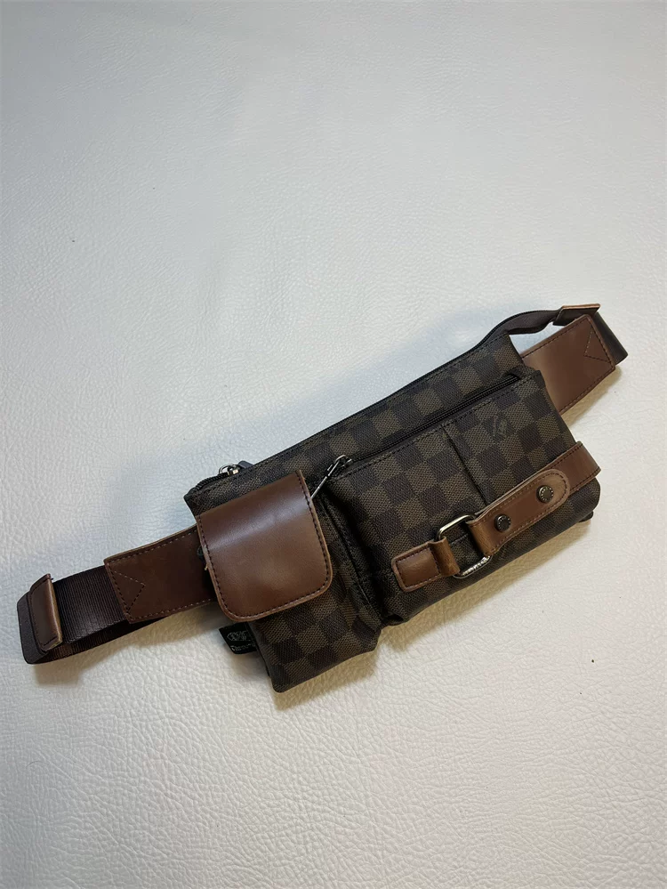 - Túi đeo ngực nam thời trang ba ngăn kiểu Nhật Bản và Hàn Quốc, túi đeo hông kẻ caro, túi đeo vai unisex thời thượng, ba lô đeo chéo
