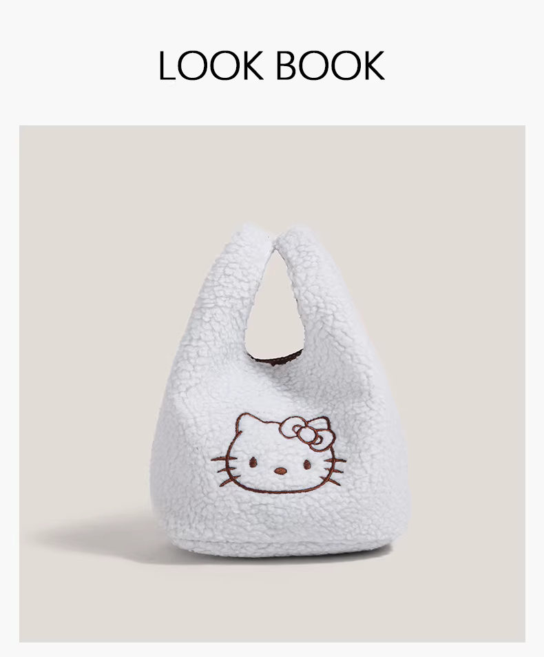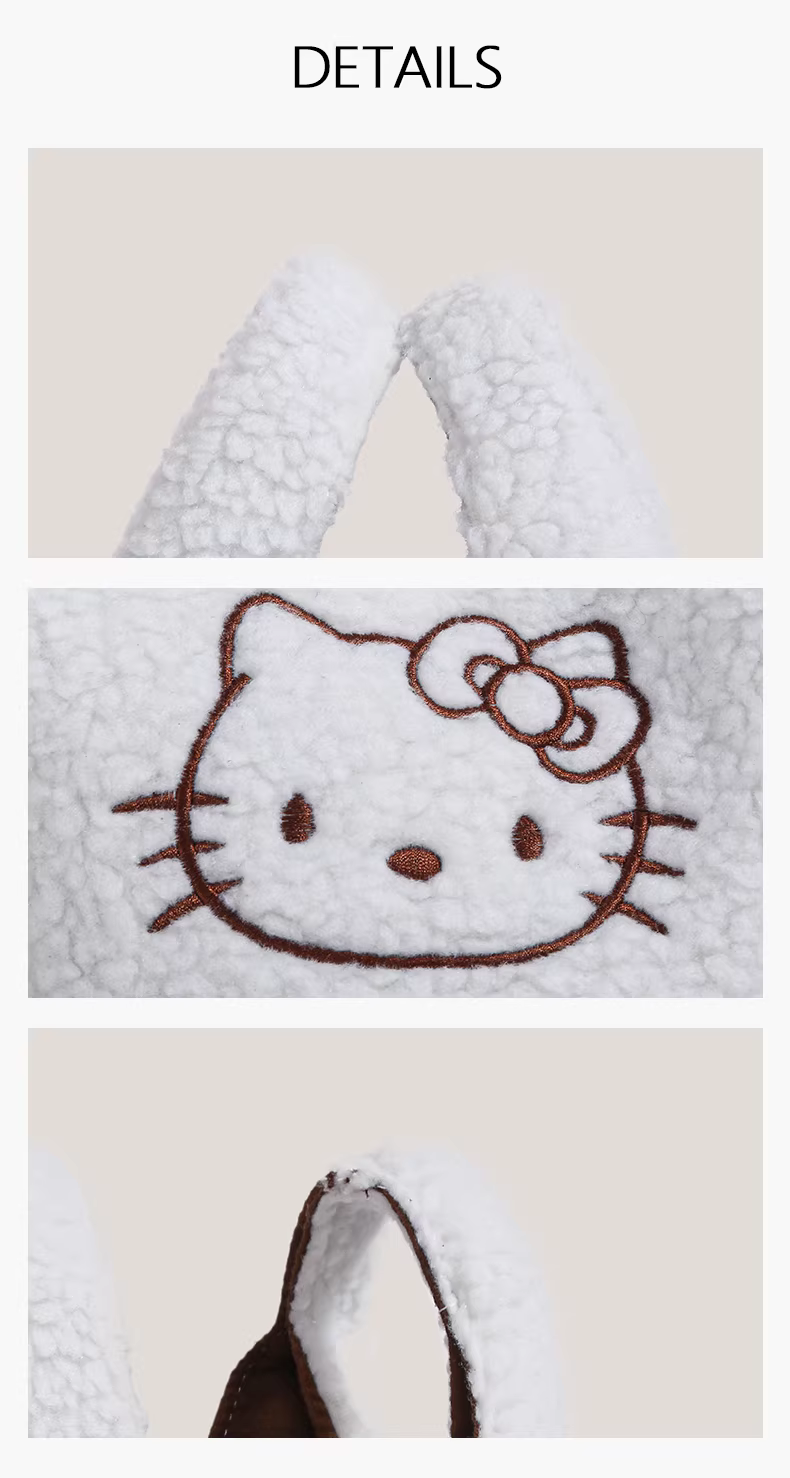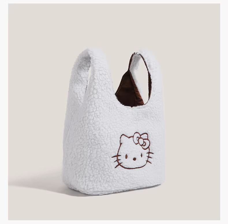 - Túi đeo tay HelloKitty dễ thương, túi xách len cừu thời trang thu đông mới, túi đựng đồ di động và túi xách du lịch