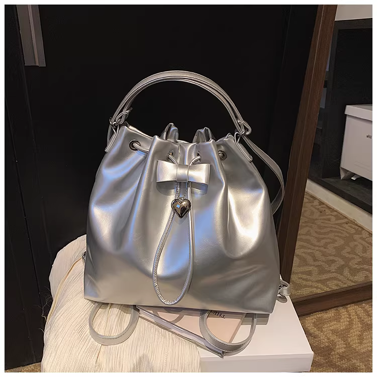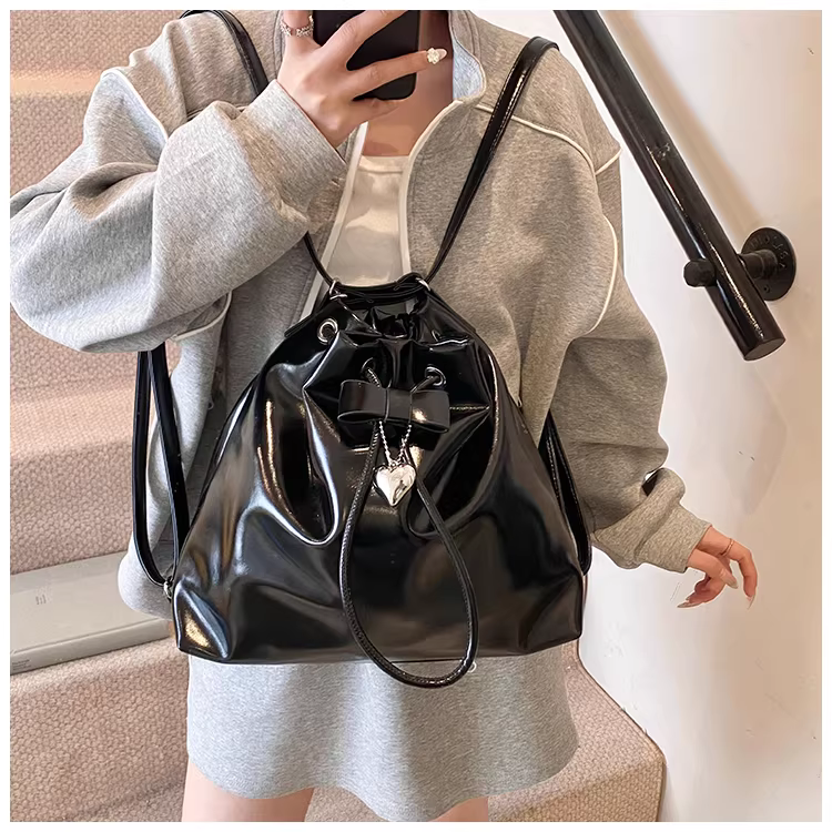 - Túi đeo vai cỡ lớn dành cho nữ, thiết kế độc đáo, túi đeo vai dây rút mới năm 2025, ba lô đa chức năng phong cách Hàn Quốc