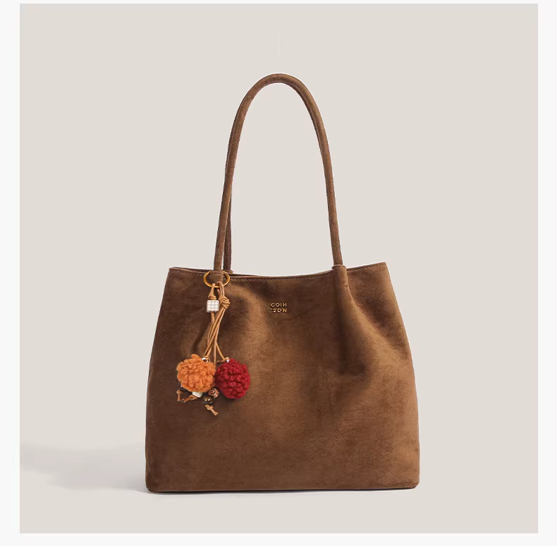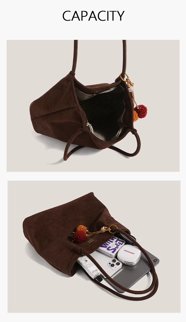 - Túi đeo vai da lộn retro thời trang nữ thu đông 2025, dung tích lớn, kiểu dáng thời thượng, túi xách đi làm