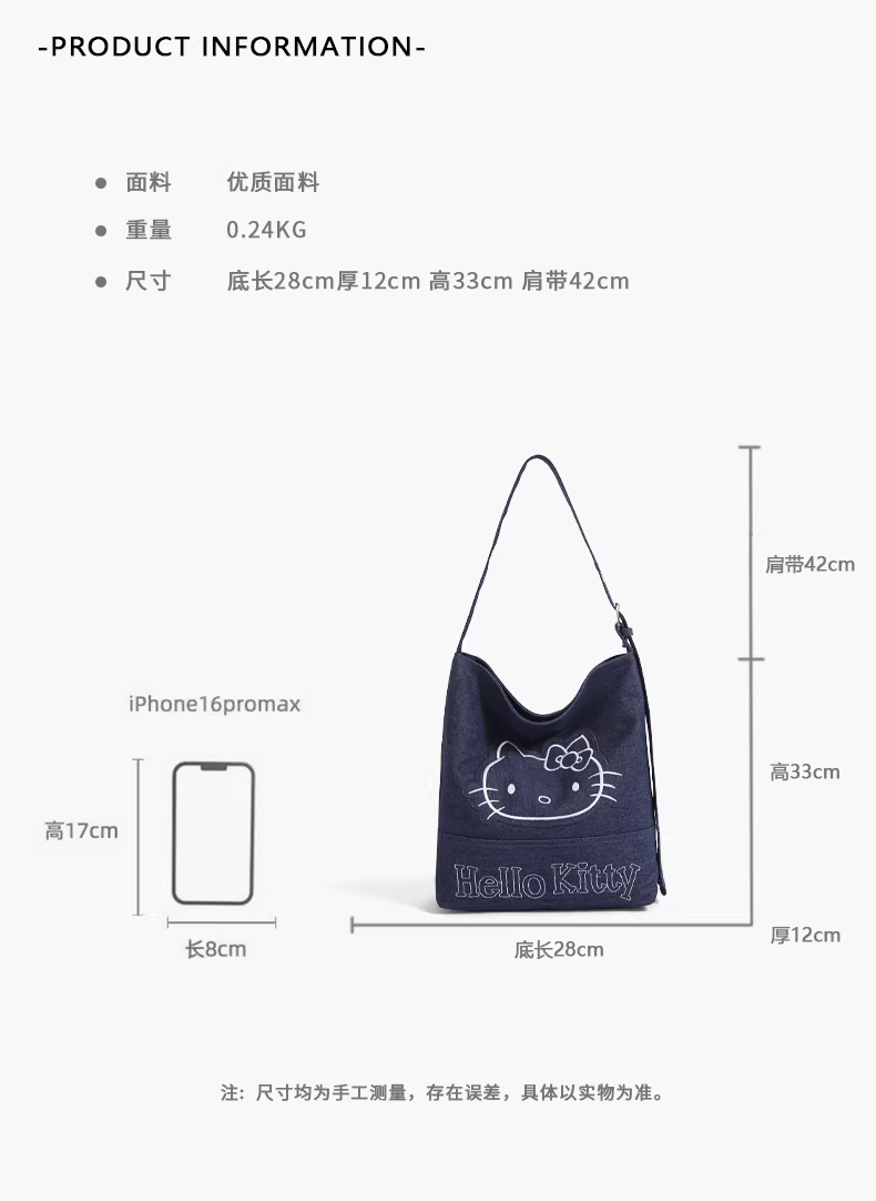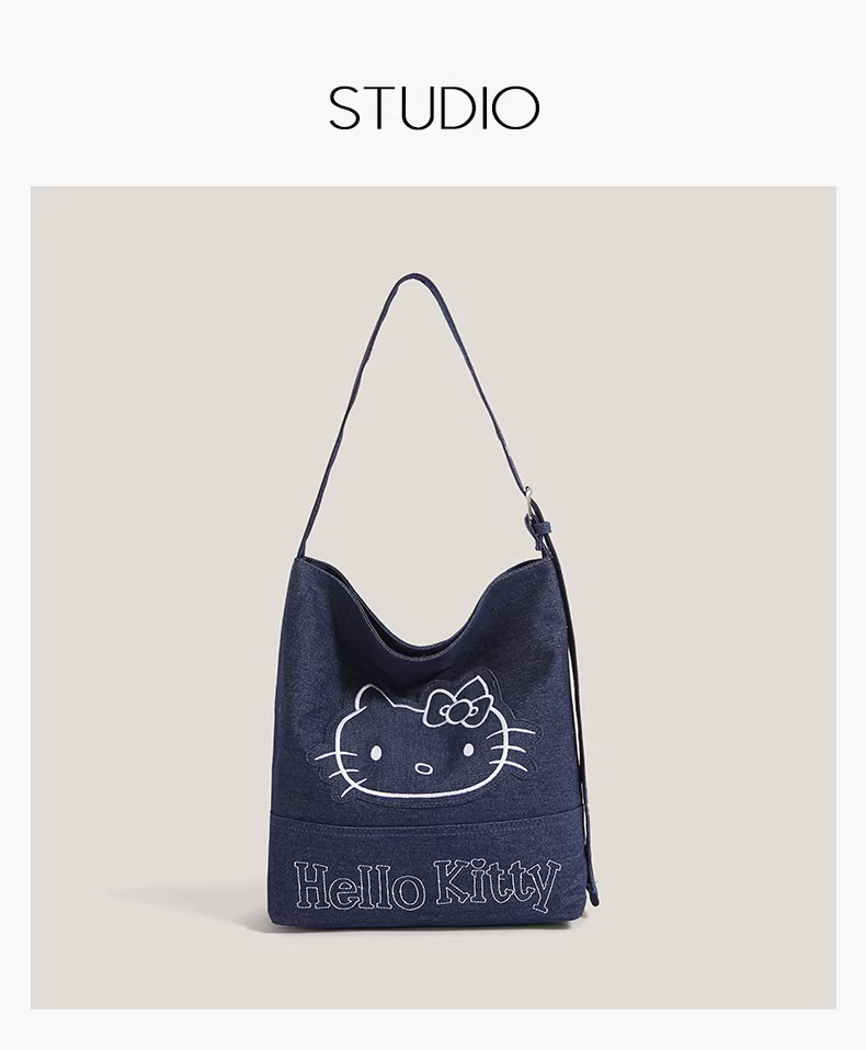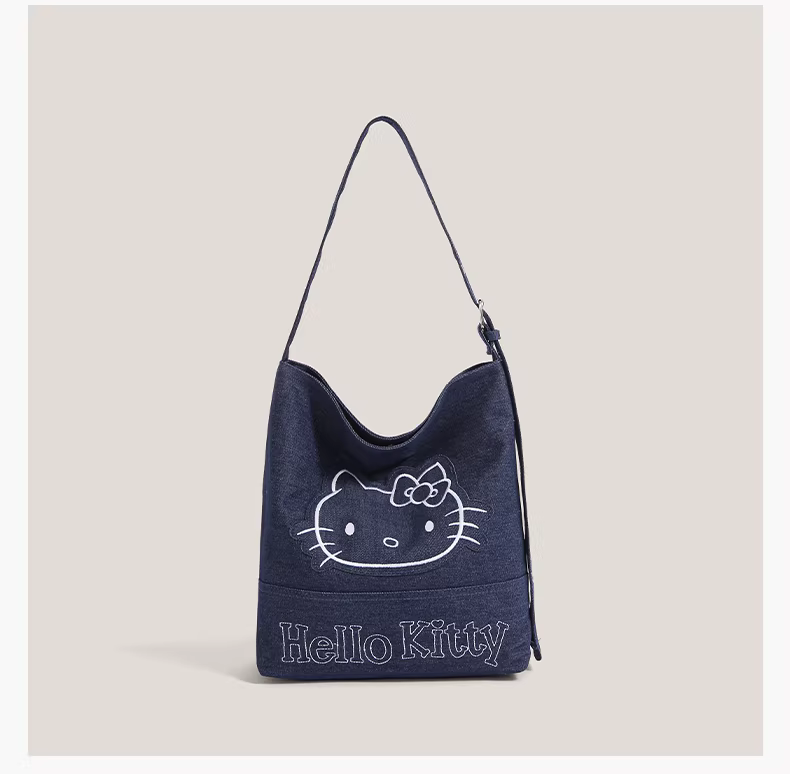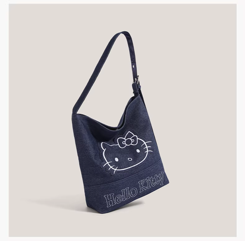 - Túi đeo vai denim Hello Kitty hoạt hình dễ thương dành cho nữ, mẫu mới 2025, dung tích lớn, kiểu dáng xô