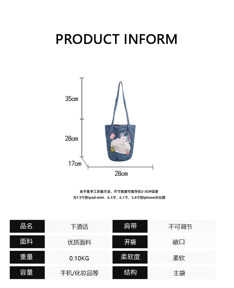 - Túi đeo vai denim nữ thời trang Hàn Quốc mới 2025, túi tote đi làm đa năng, dung tích lớn, chất liệu canvas