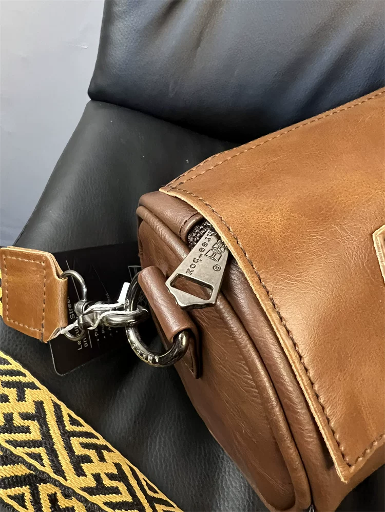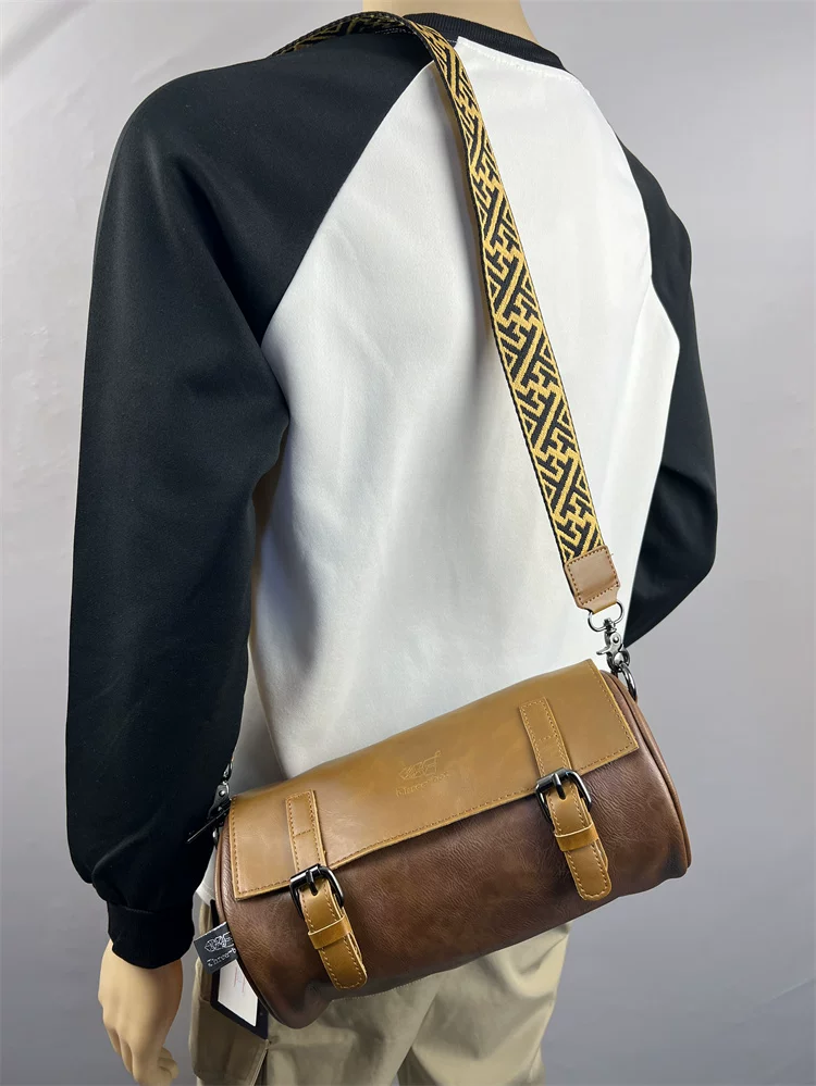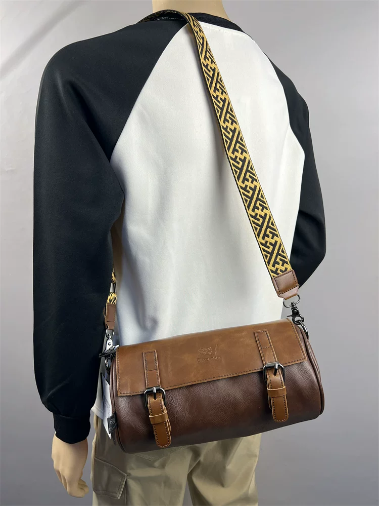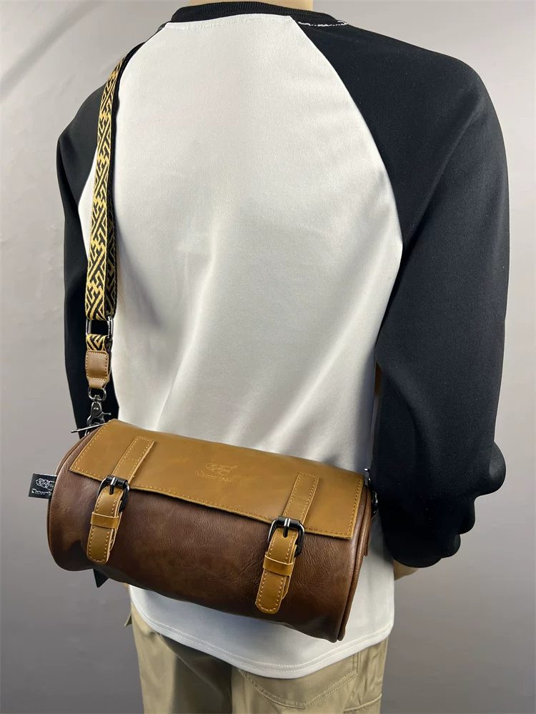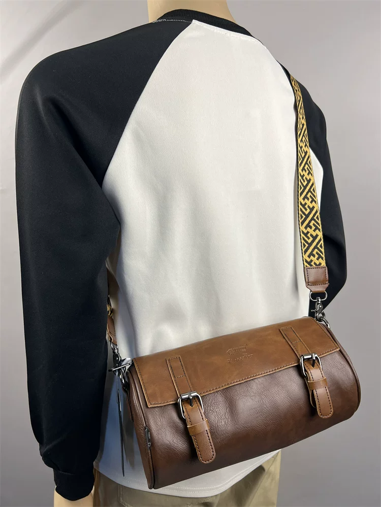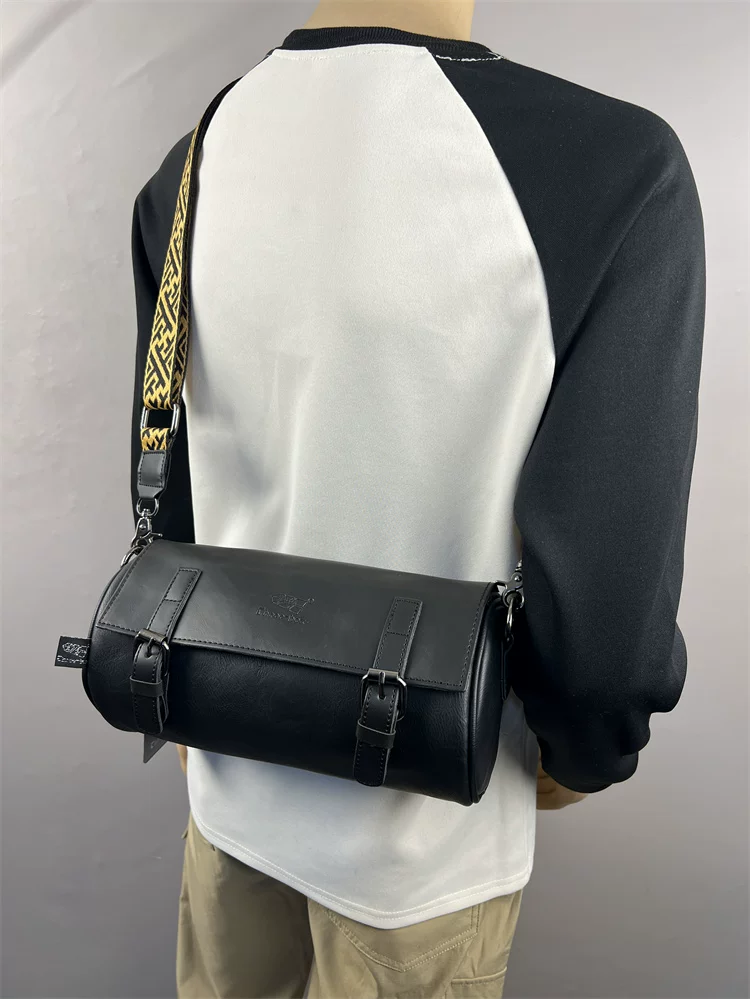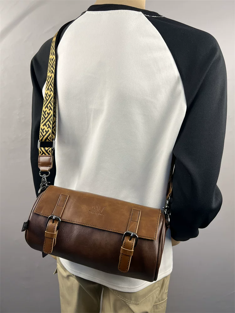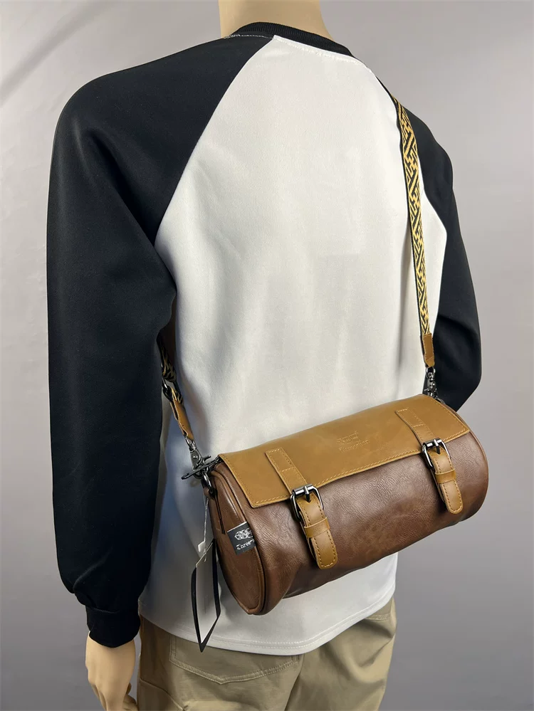 - Túi đeo vai nam ba ngăn kiểu Nhật Bản và Hàn Quốc, túi hình trụ đi làm, túi đeo chéo nam thời trang bằng da PU, balo cá tính