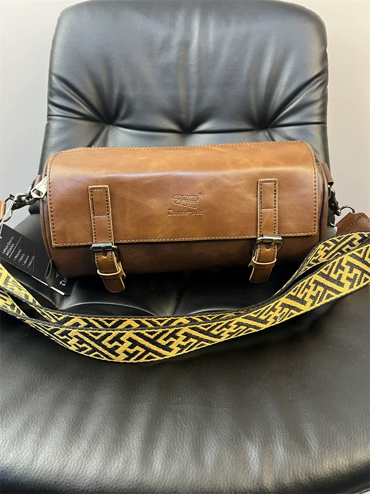 Túi đeo vai nam ba ngăn kiểu Nhật Bản và Hàn Quốc, túi hình trụ đi làm, túi đeo chéo nam thời trang bằng da PU, balo cá tính