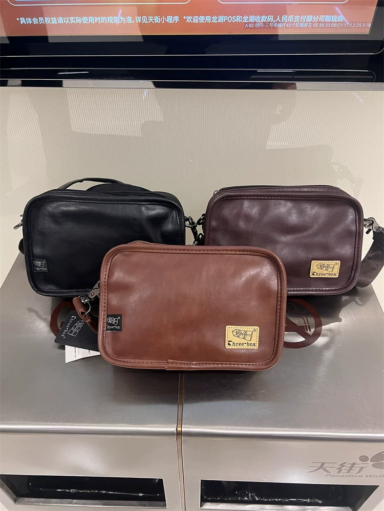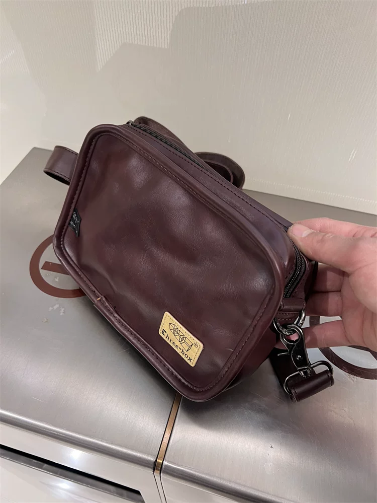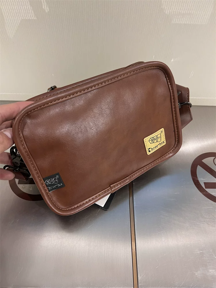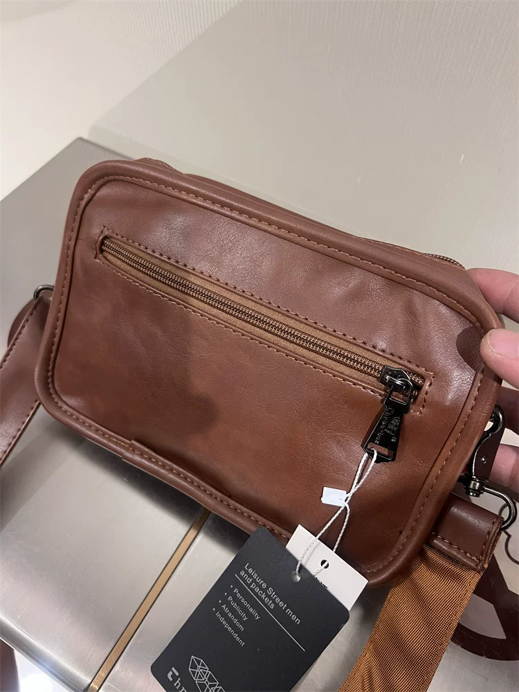 Túi đeo vai nam đơn giản và phong cách mới, túi đeo chéo dành cho giới trẻ giản dị trên mạng, túi đeo chéo bằng da mềm thương hiệu thời thượng