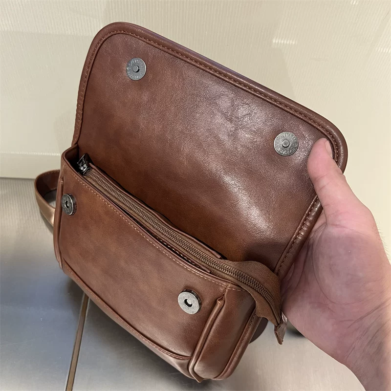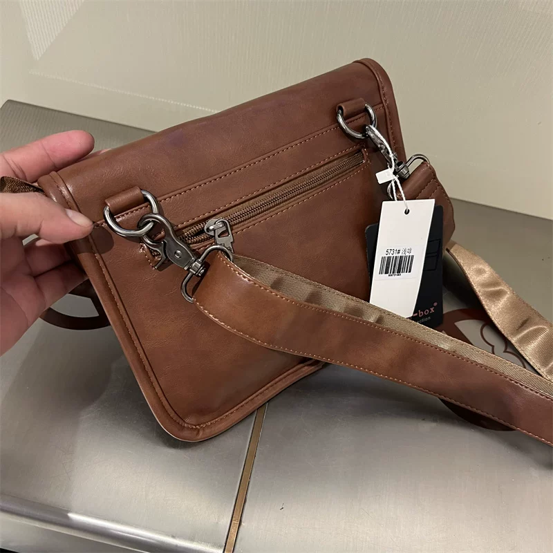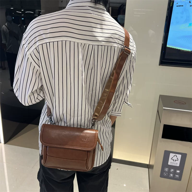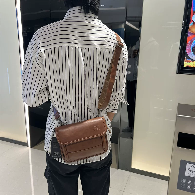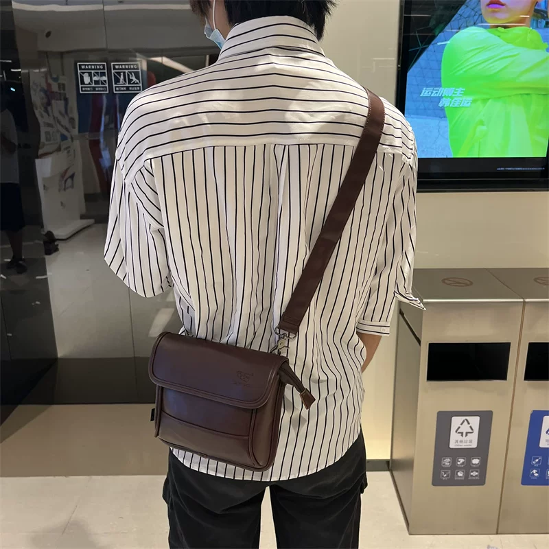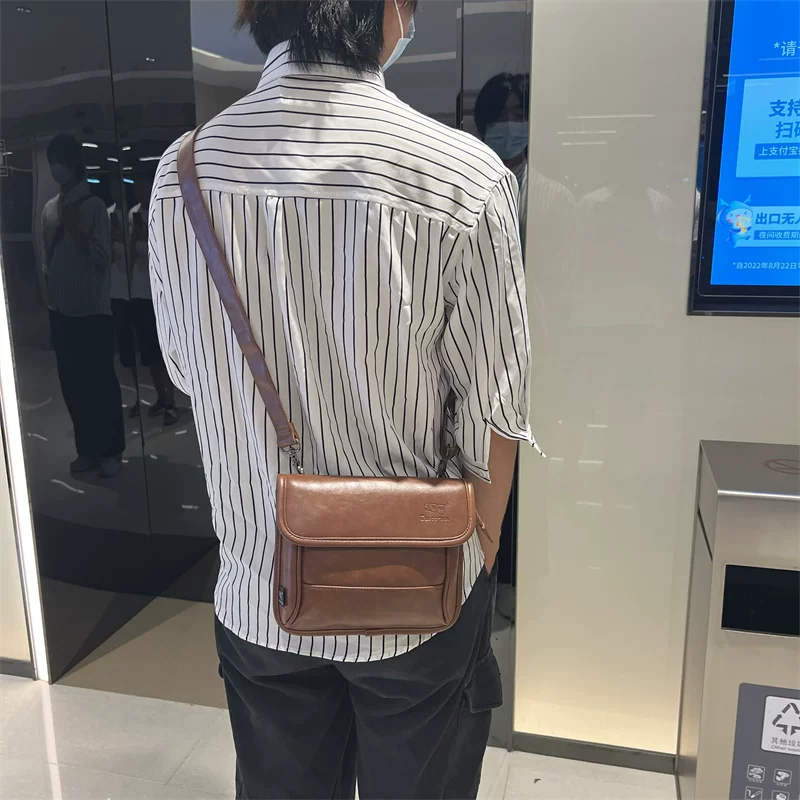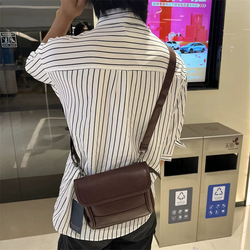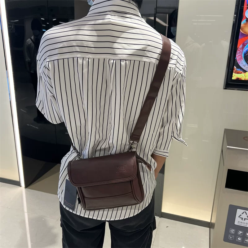 - Túi đeo vai nam Hàn Quốc thời trang ba ngăn, kiểu đeo chéo đơn giản, phong cách retro hip-hop, túi nhỏ nữ