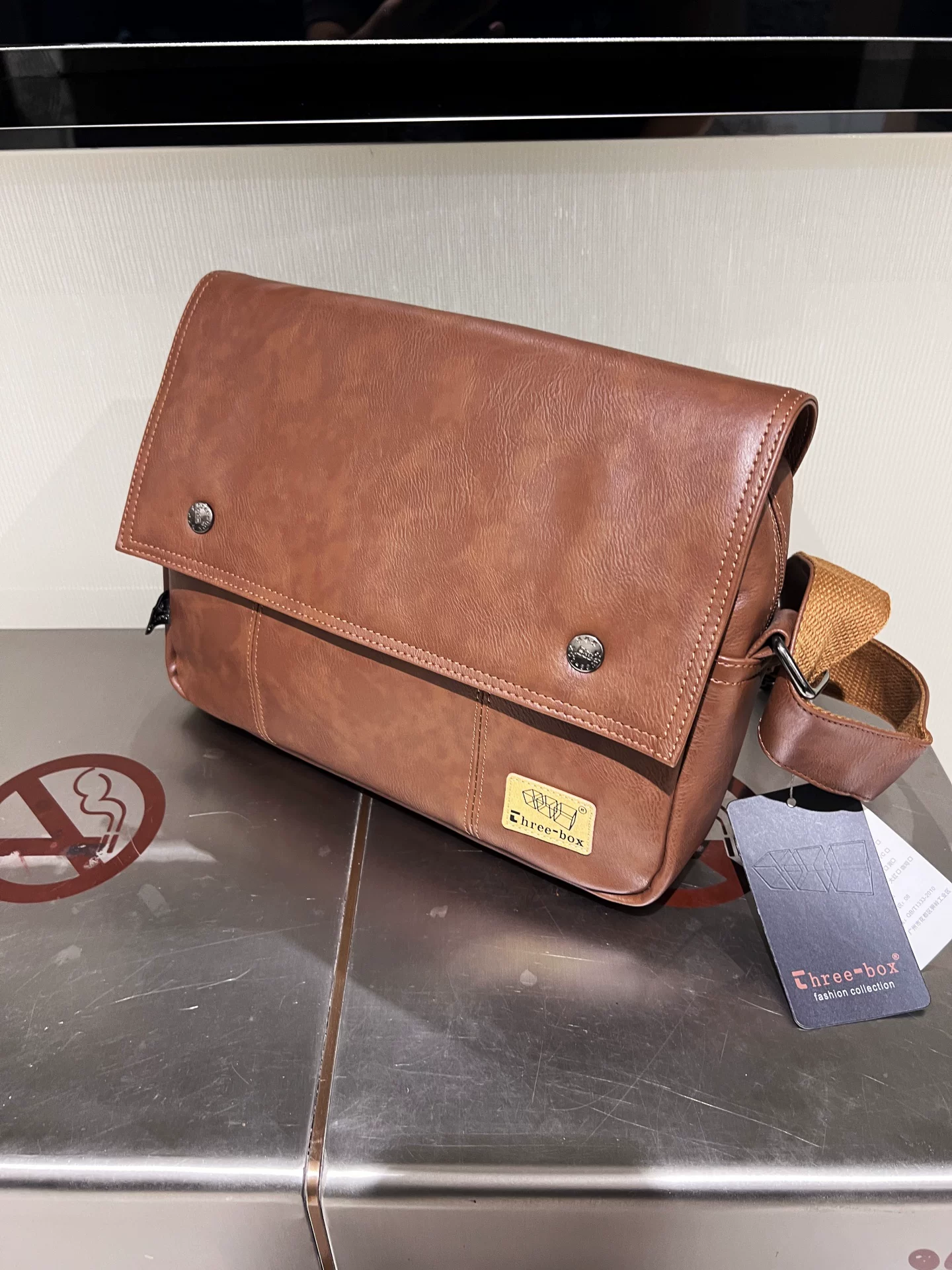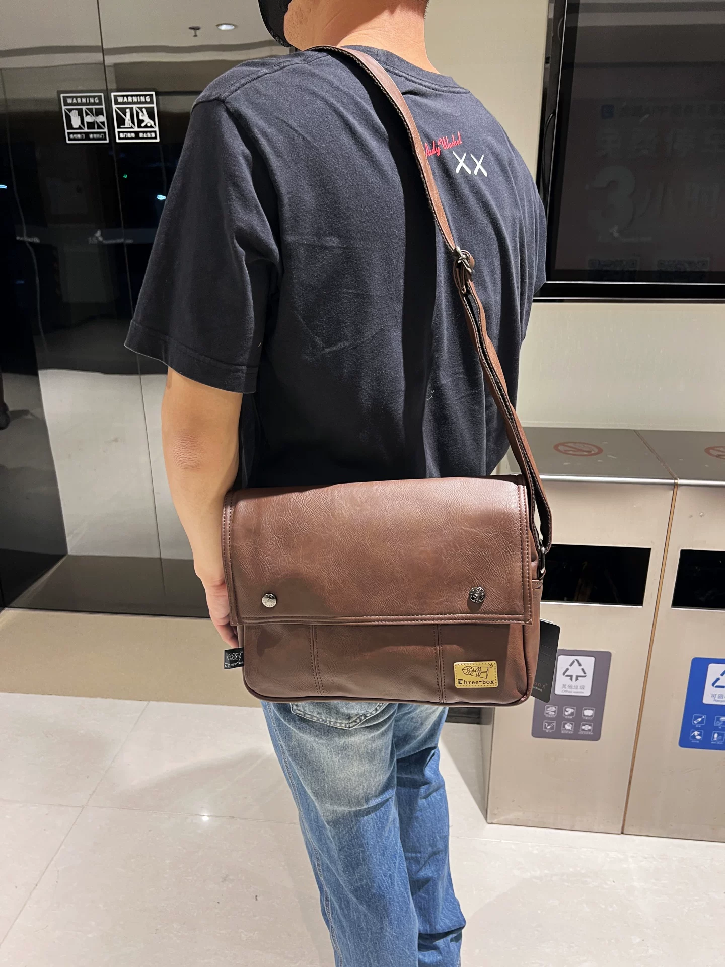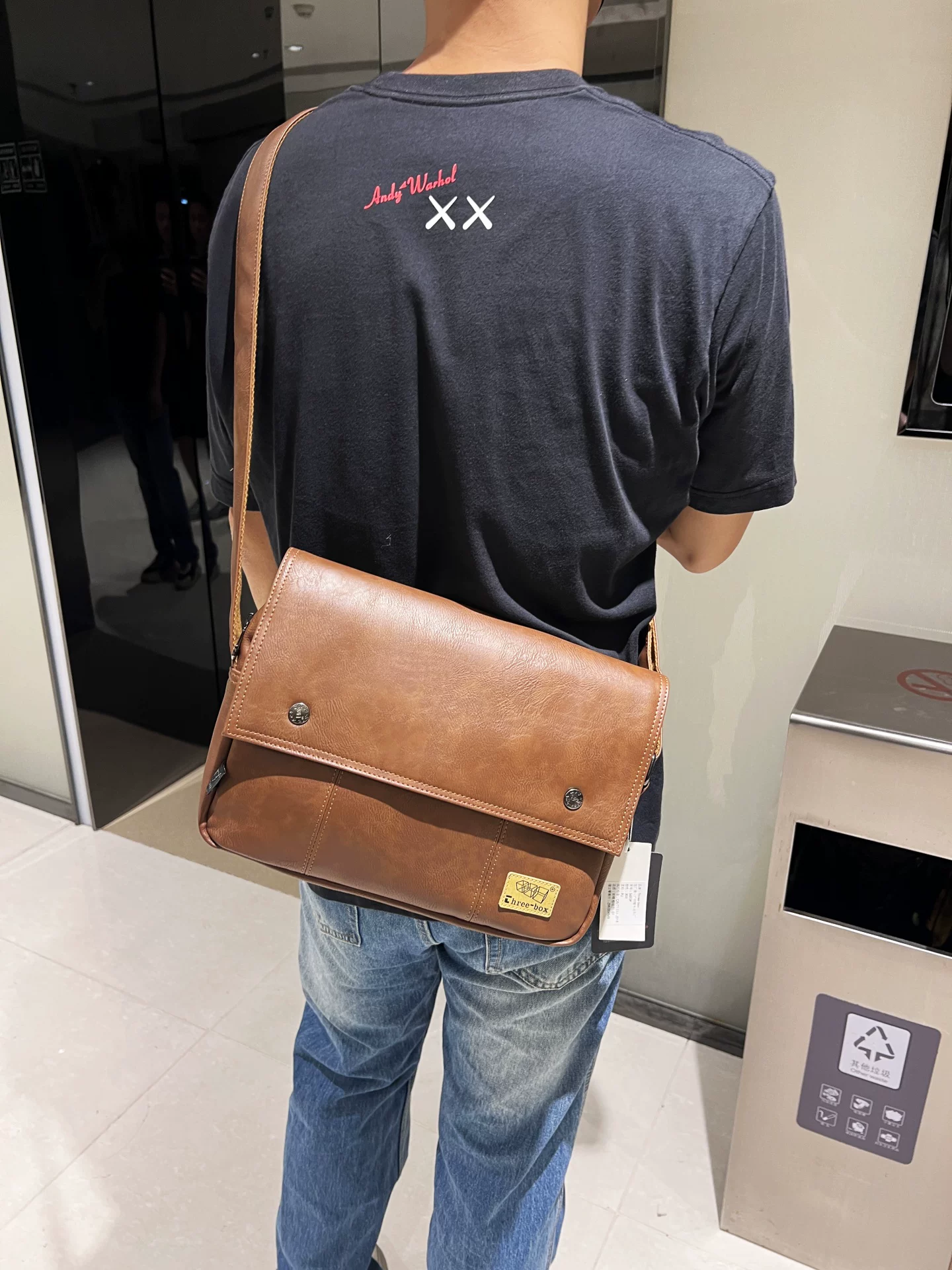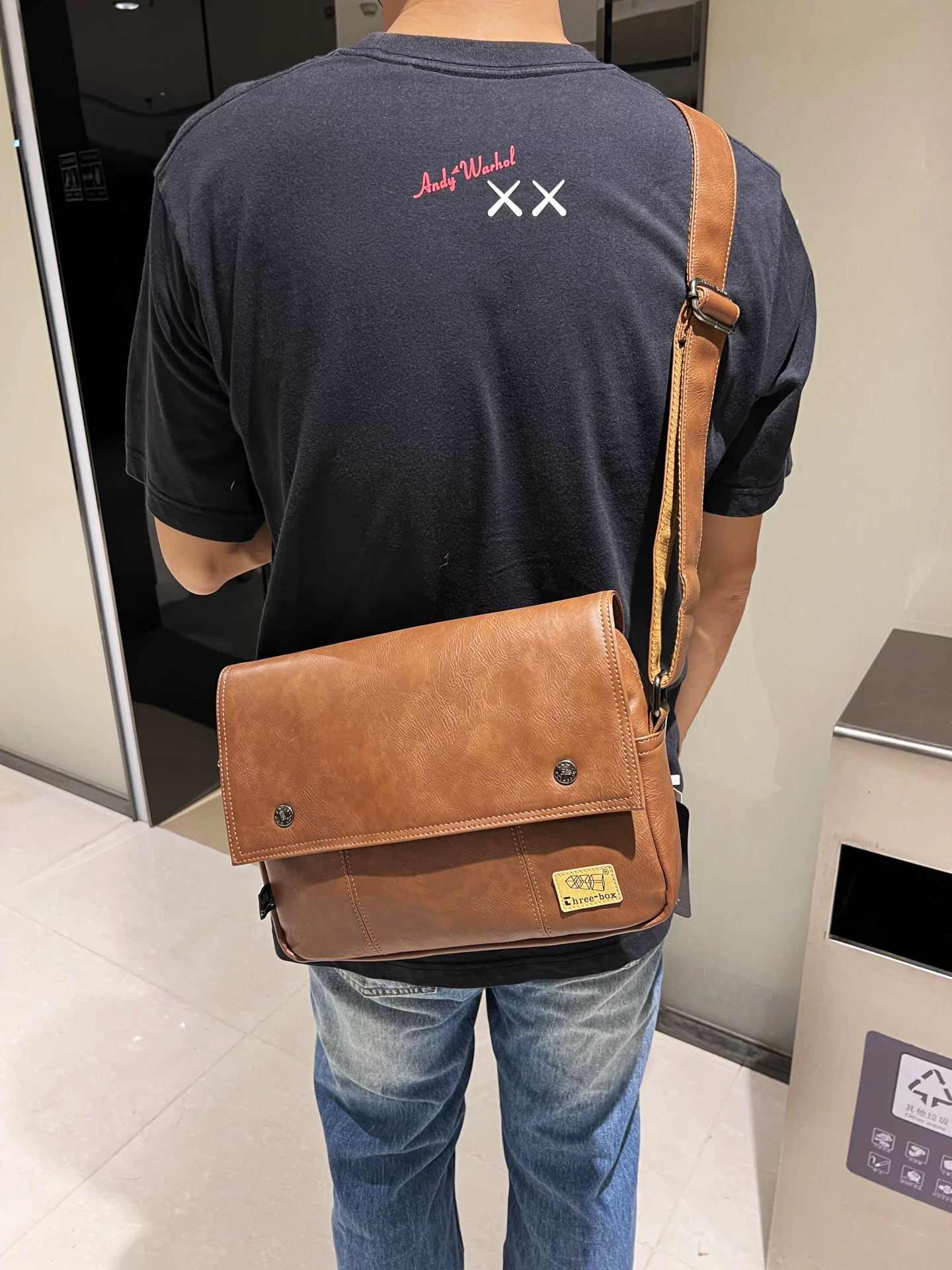 - Túi đeo vai nam phong cách Hàn Quốc ba hộp chất liệu da thật túi xách nam thể thao thông thường túi đeo chéo túi đựng ipad