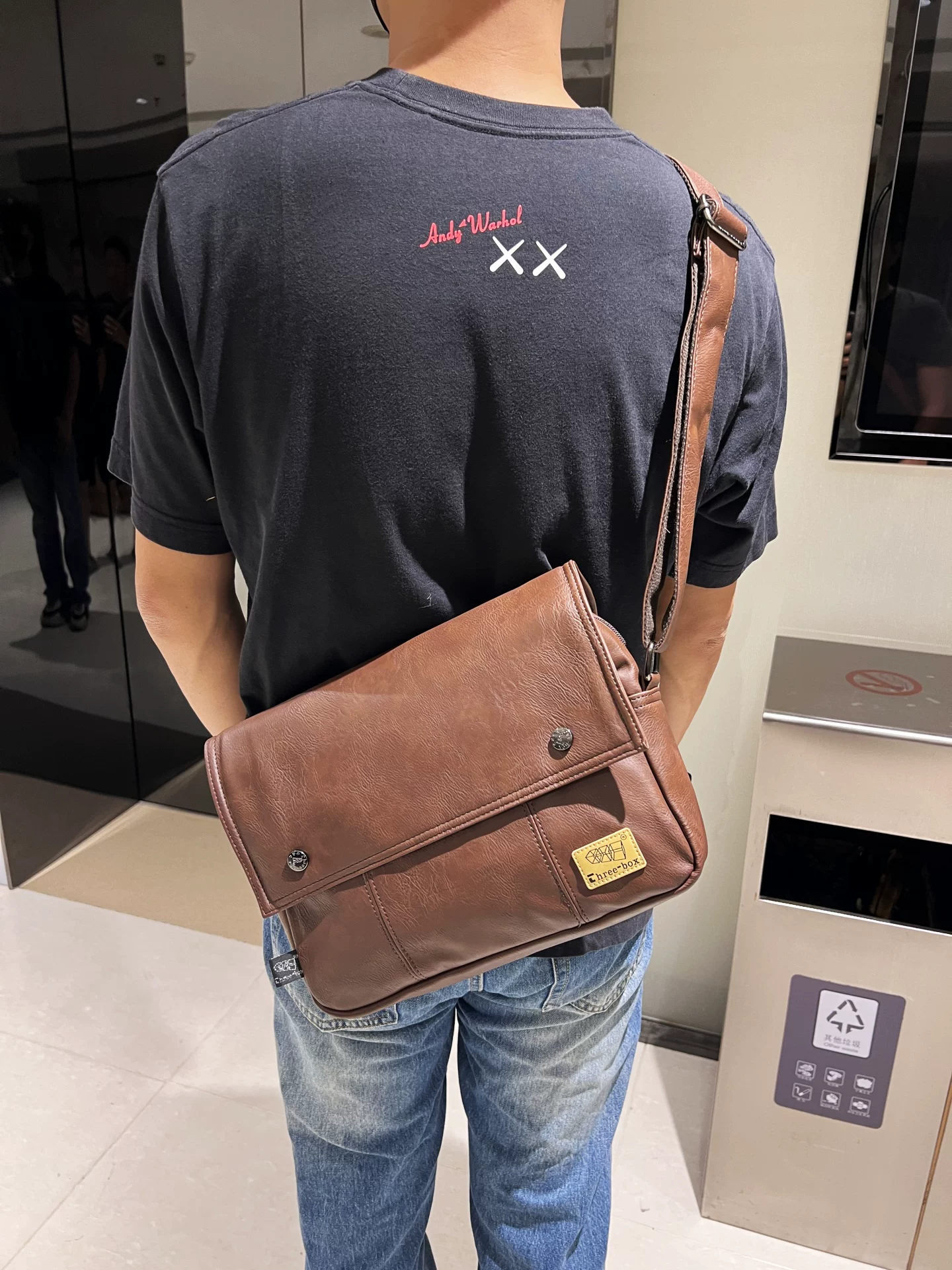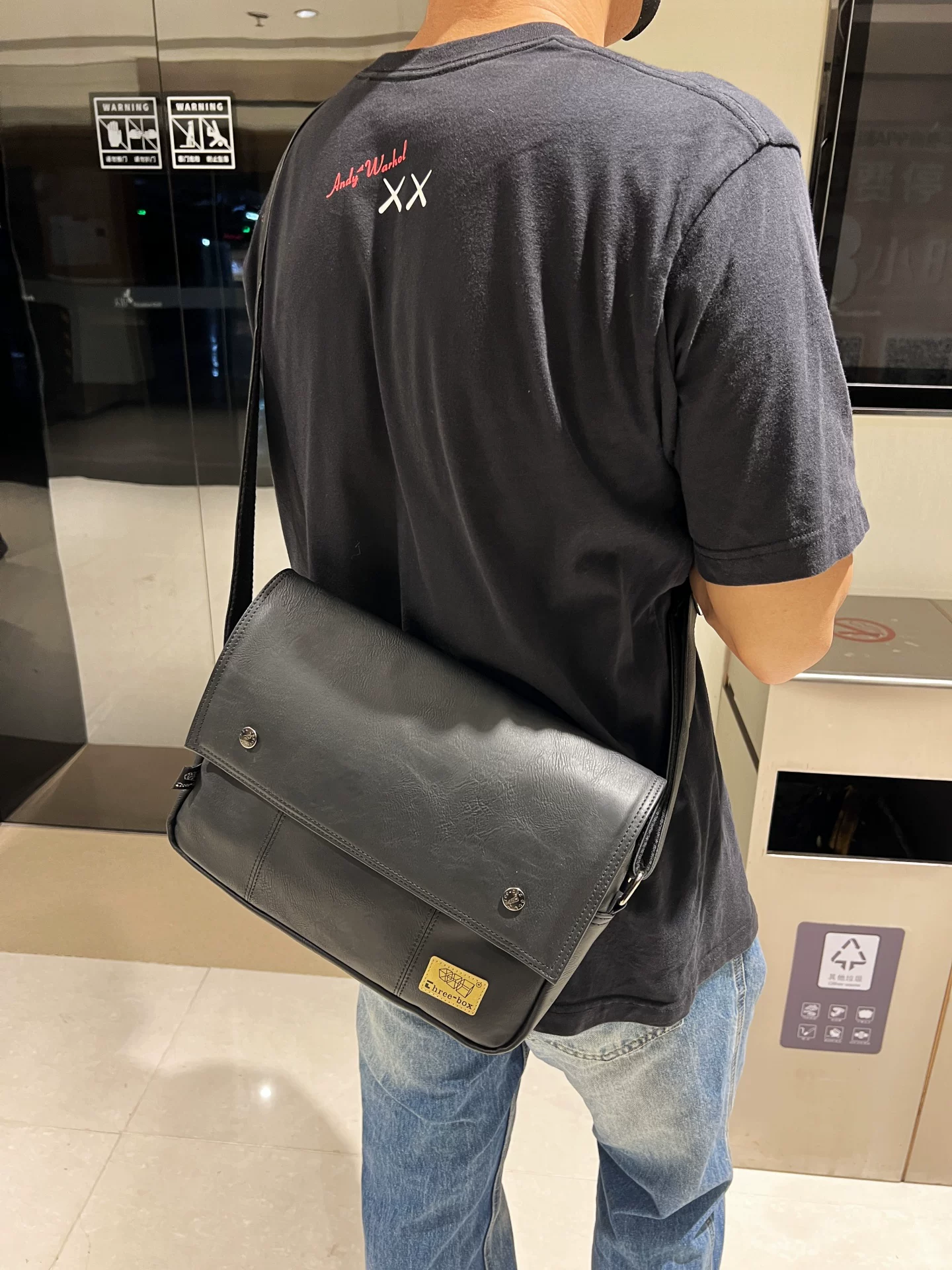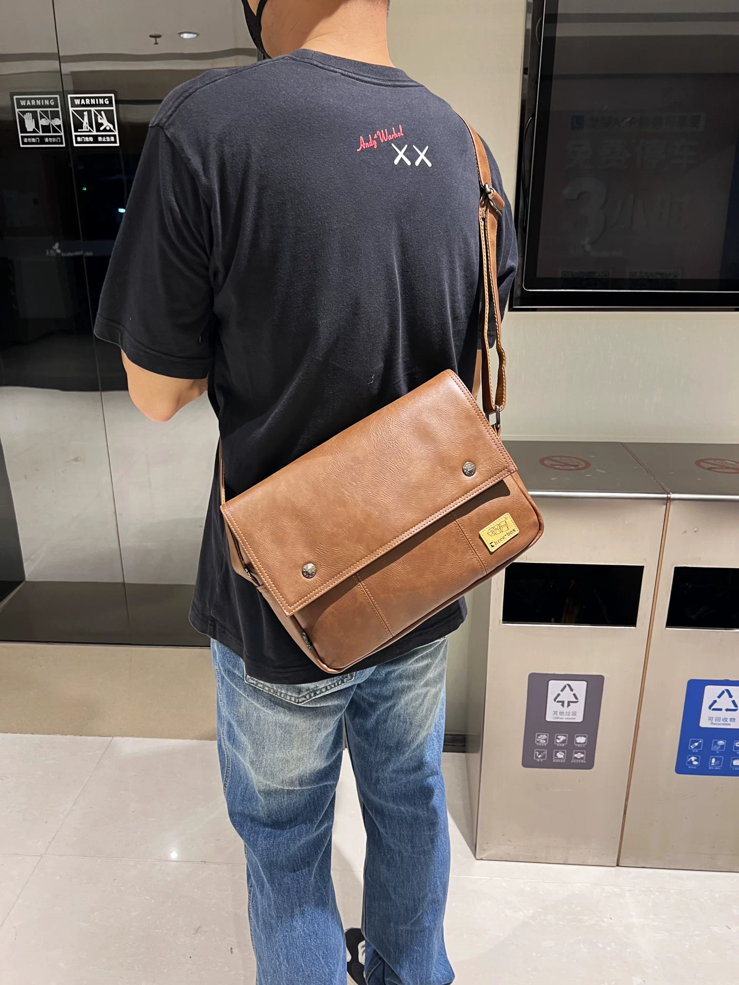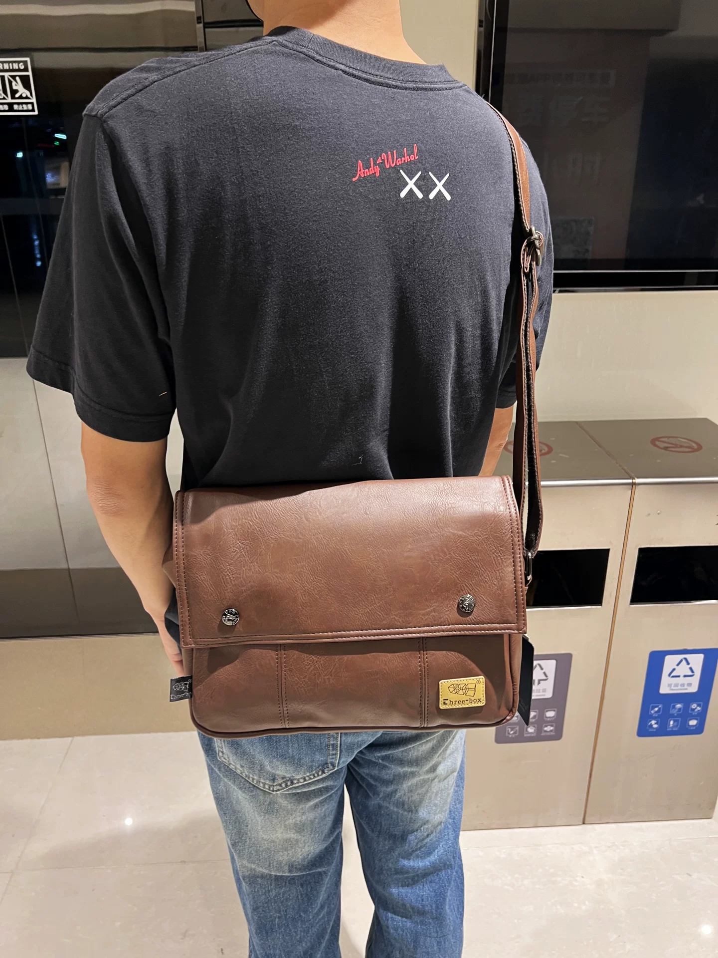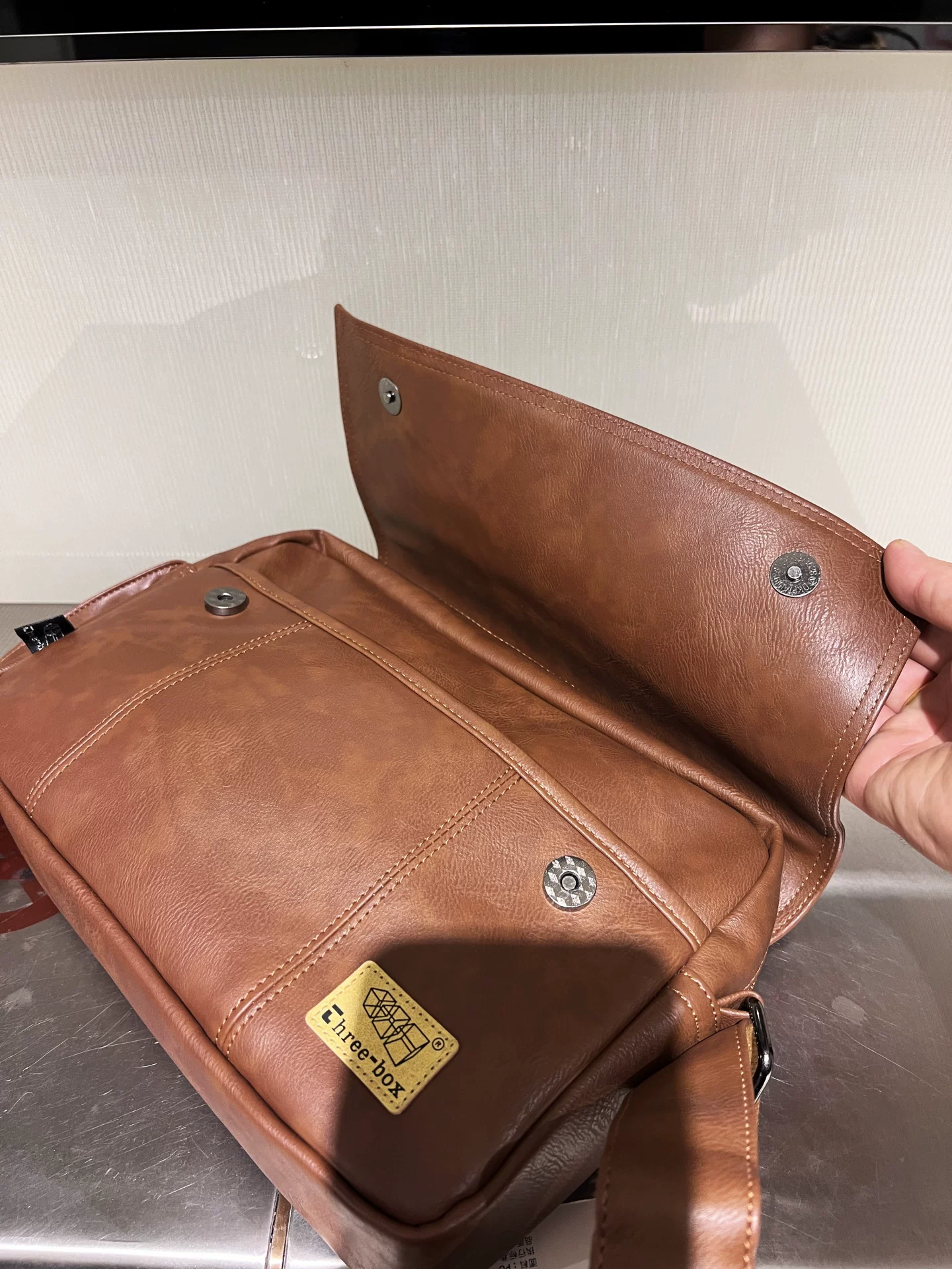 - Túi đeo vai nam phong cách Hàn Quốc ba hộp chất liệu da thật túi xách nam thể thao thông thường túi đeo chéo túi đựng ipad