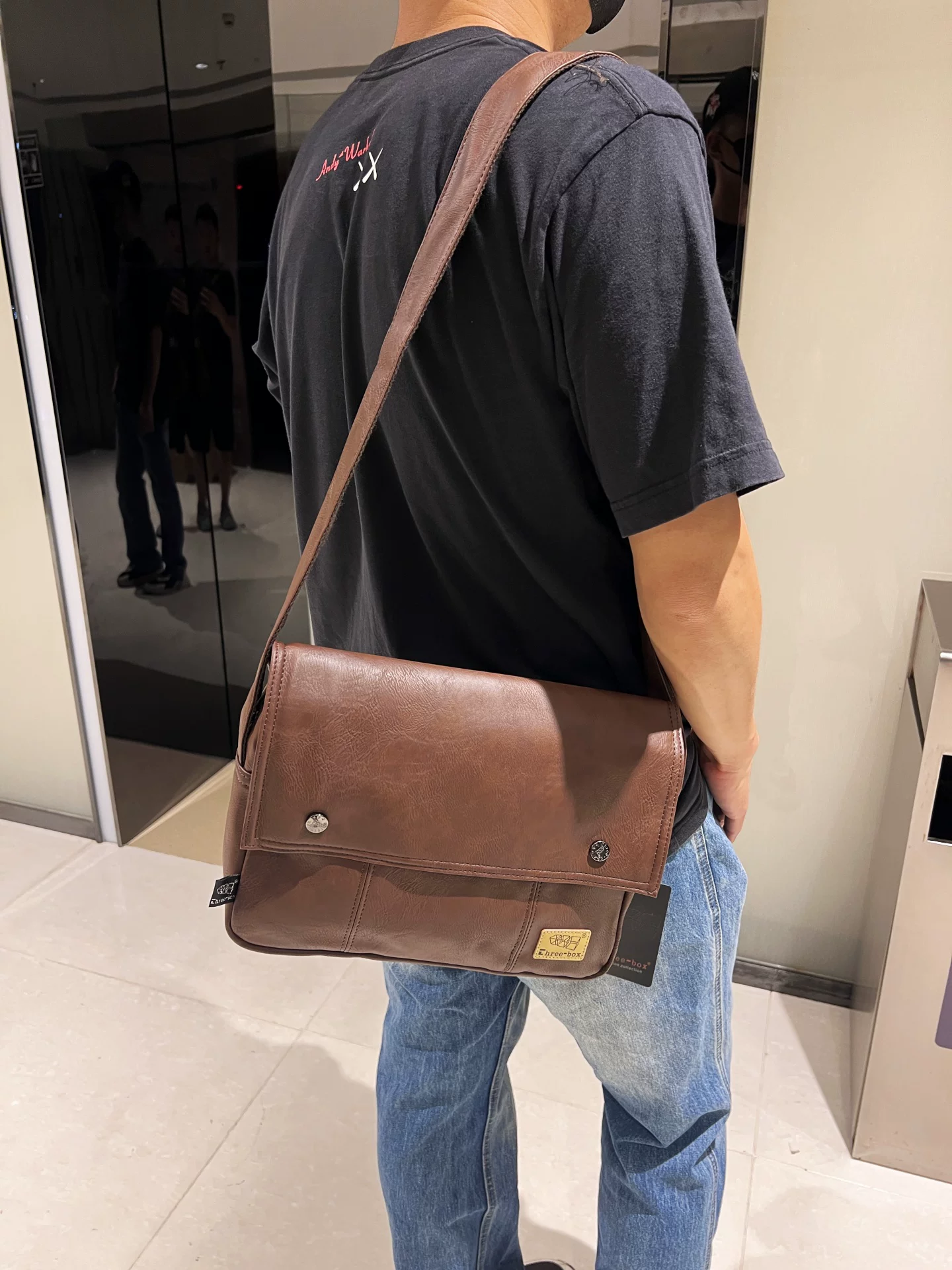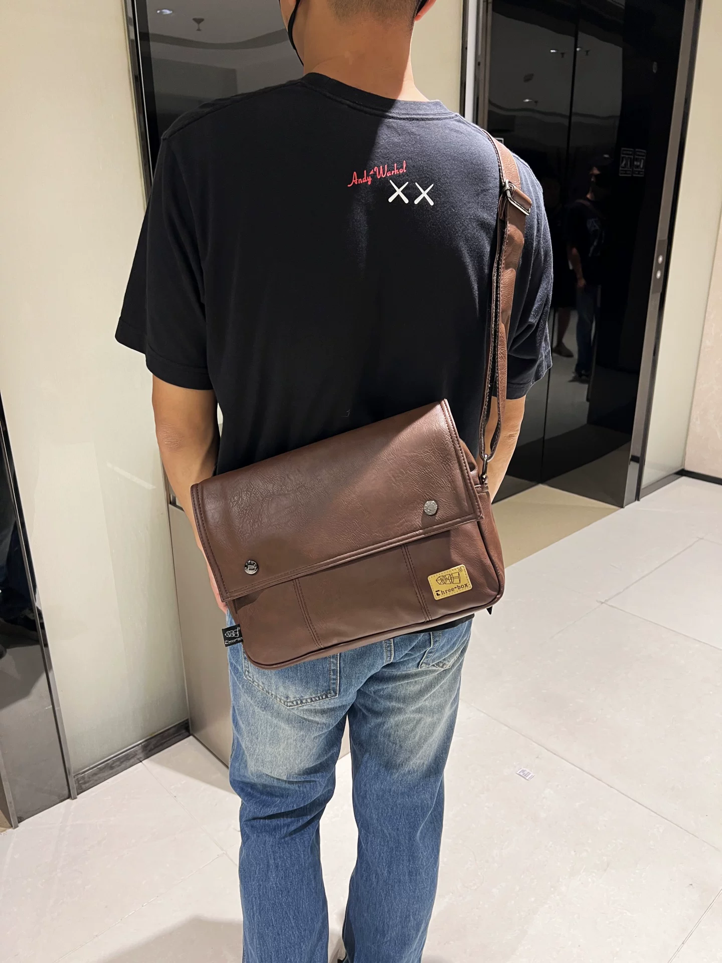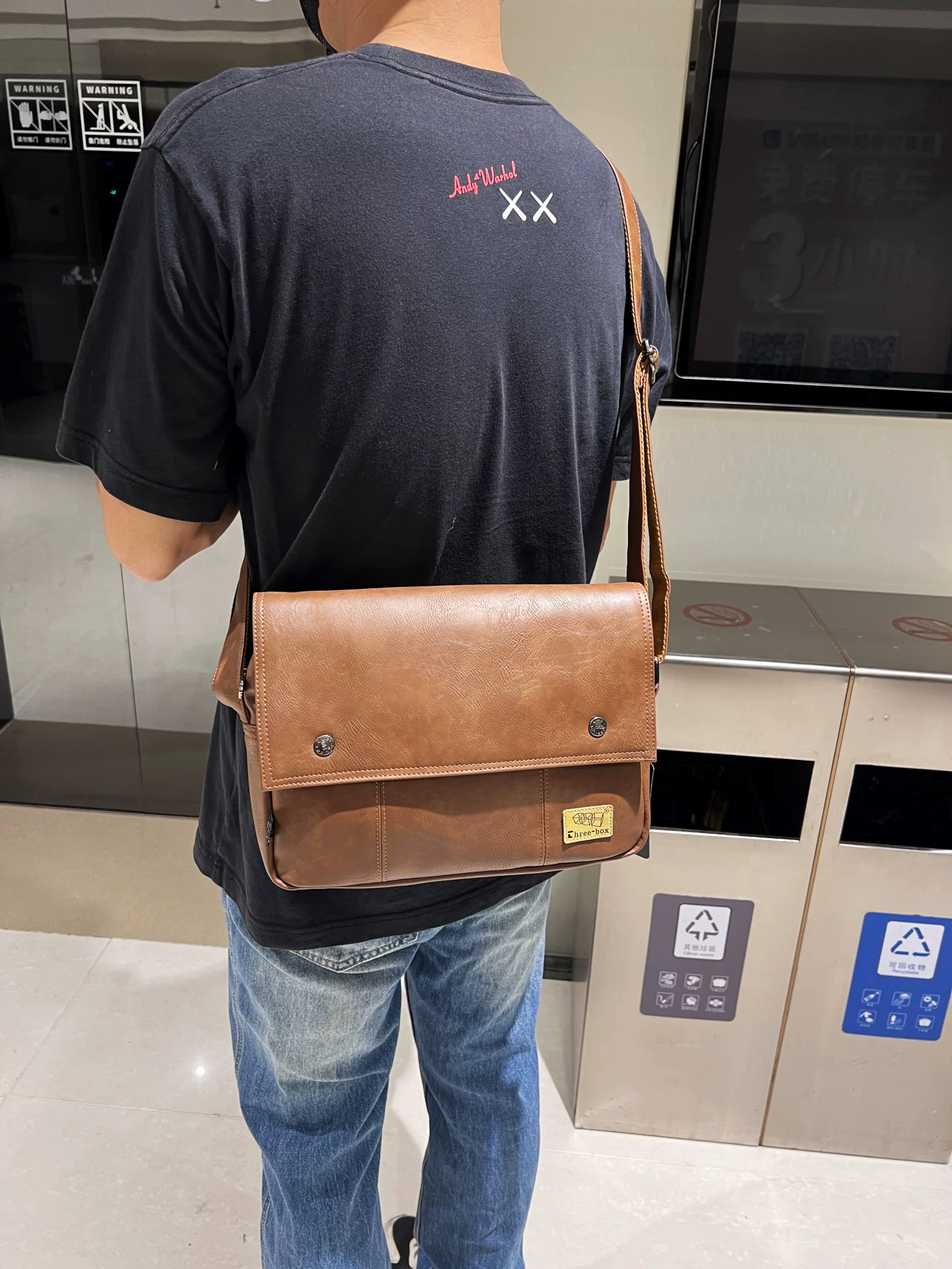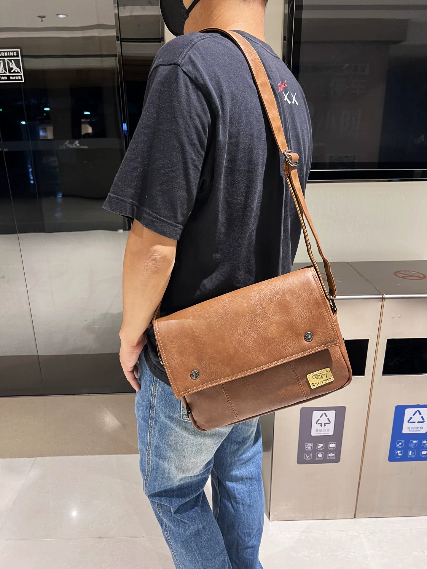 - Túi đeo vai nam phong cách Hàn Quốc ba hộp chất liệu da thật túi xách nam thể thao thông thường túi đeo chéo túi đựng ipad