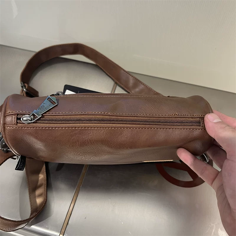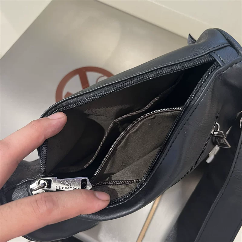 - Túi đeo vai nam phong cách Hàn Quốc Nhật Bản ba ngăn, túi đeo chéo nam thời trang cá tính, túi điện thoại có khóa kéo cổ điển