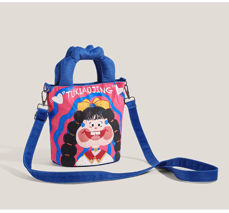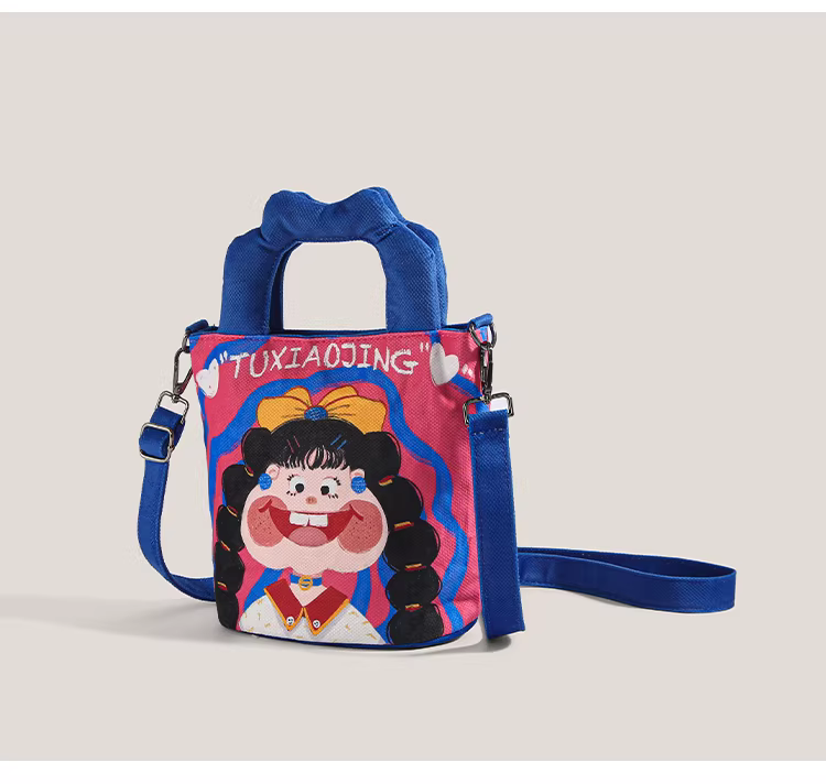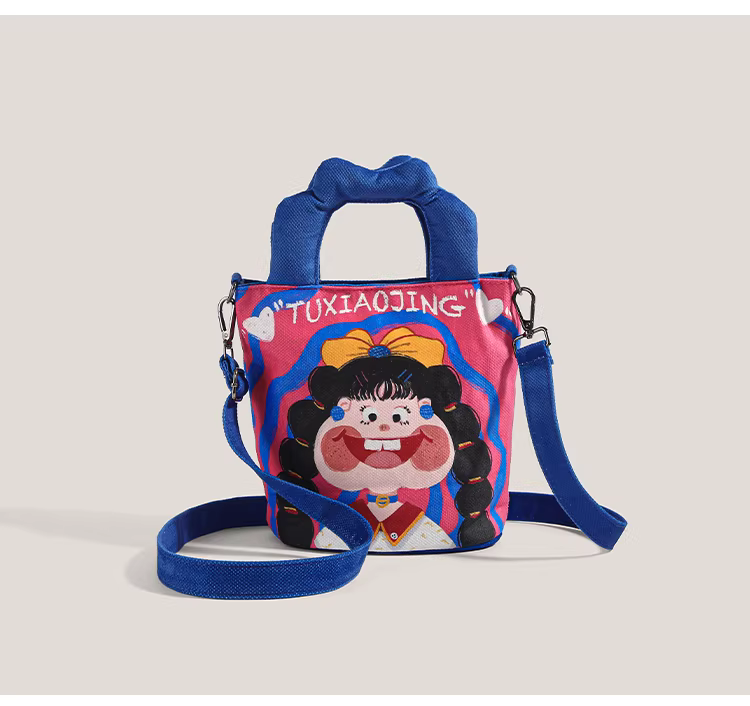 Túi đeo vai nữ thiết kế minh họa độc đáo, mẫu mới 2025, thời thượng, dễ thương, chất liệu canvas, kiểu dáng lạ mắt, đeo chéo.