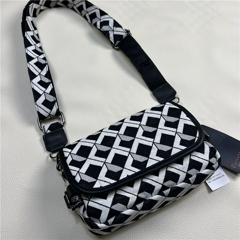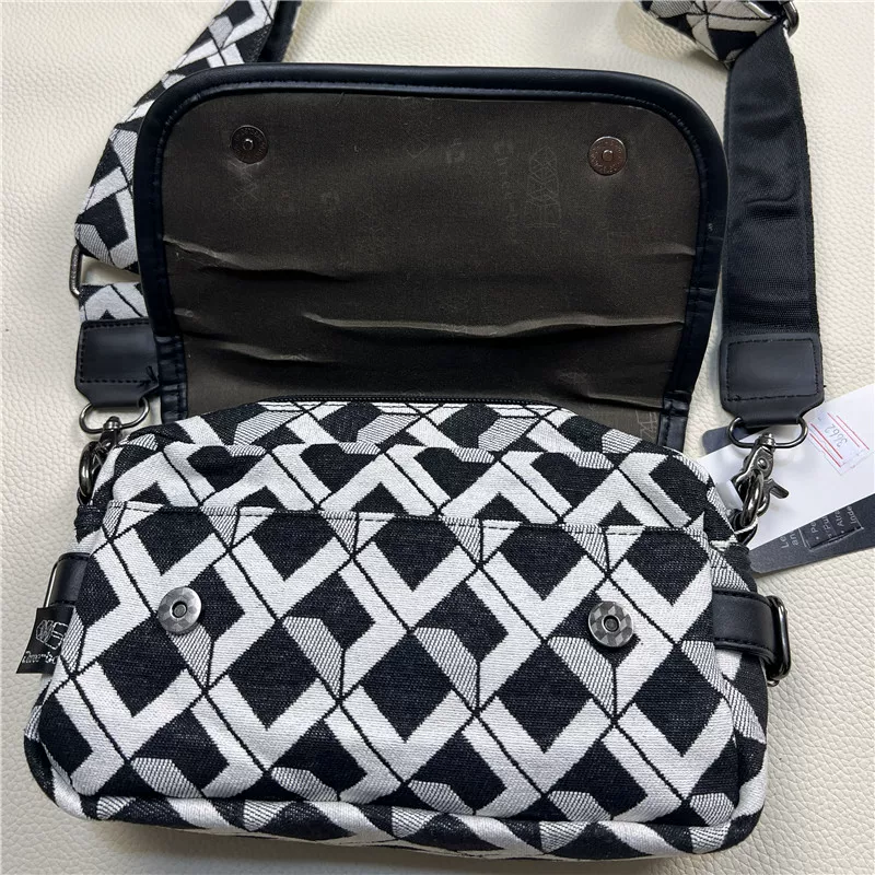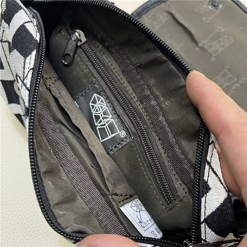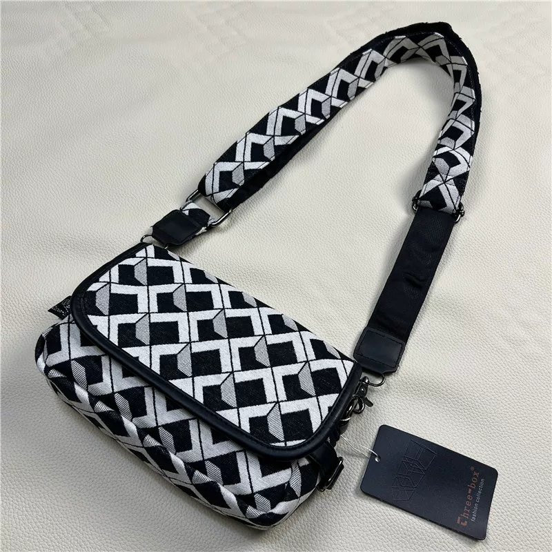 Túi đeo vai unisex vải canvas phong cách Hàn Quốc thời trang ba ngăn, họa tiết ca rô đen trắng, balo đeo chéo ngoài trời, túi nam