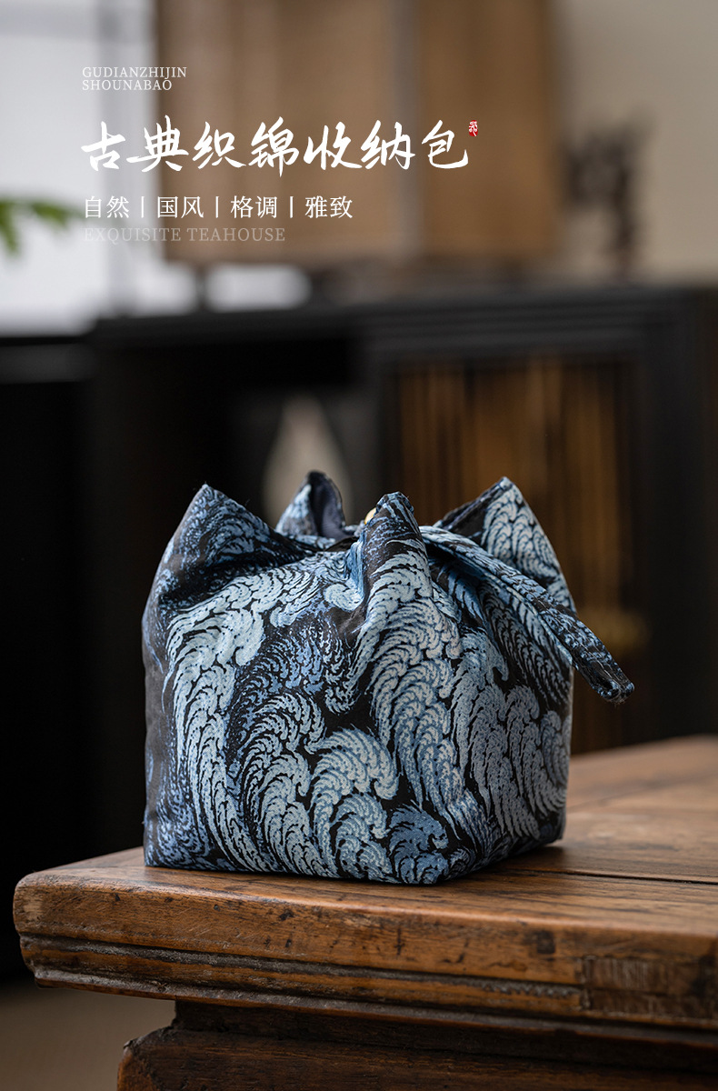 Túi đựng cốc thổ cẩm thủ công túi đựng cốc chủ đơn chống rơi dày túi đựng đồ xách tay kiểu Nhật túi đựng cốc trà túi du lịch
