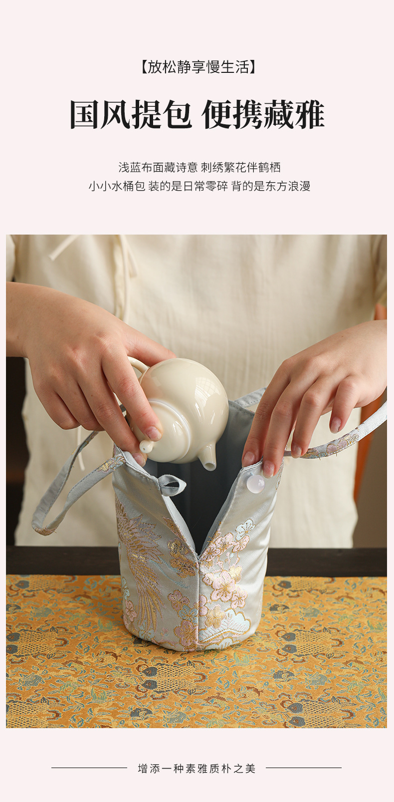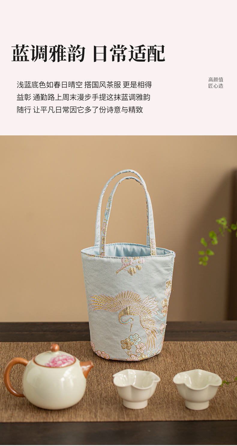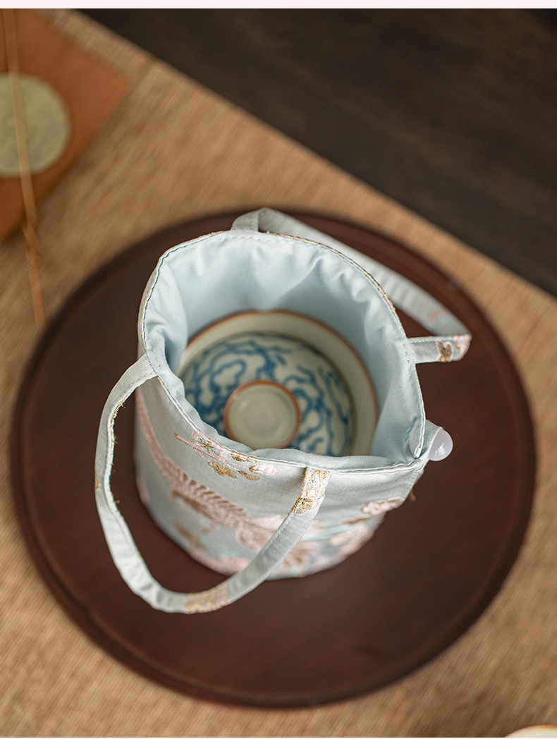 - Túi đựng đồ du lịch, túi đựng tách trà, túi đựng đồ thủ công chống rơi kiểu Trung Quốc mới phong cách cổ điển, vải đựng bộ ấm trà chủ