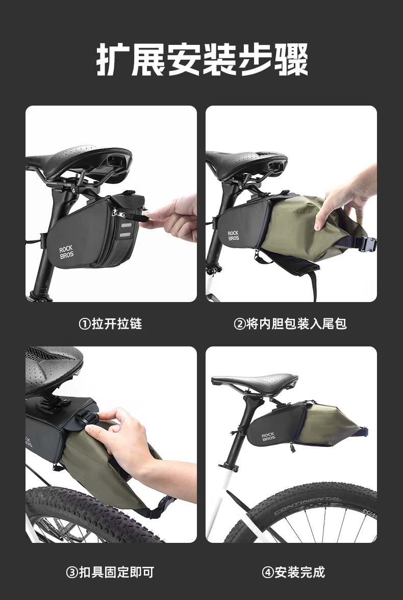 - Túi đựng xe đạp Rock Brothers chống thấm nước, túi đuôi xe có thể mở rộng, túi yên xe phía sau, túi chia ngăn, thiết bị đi xe đạp đường núi