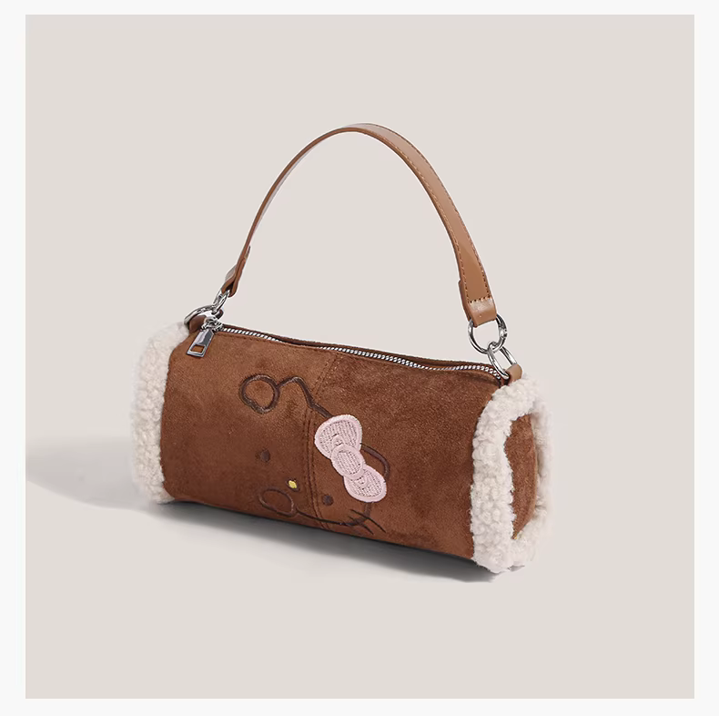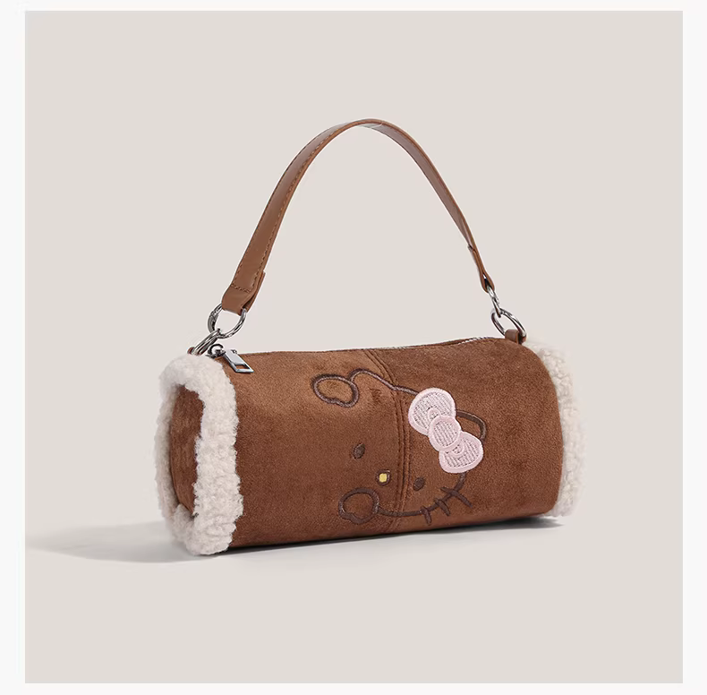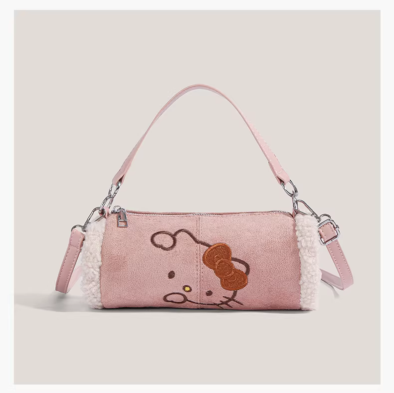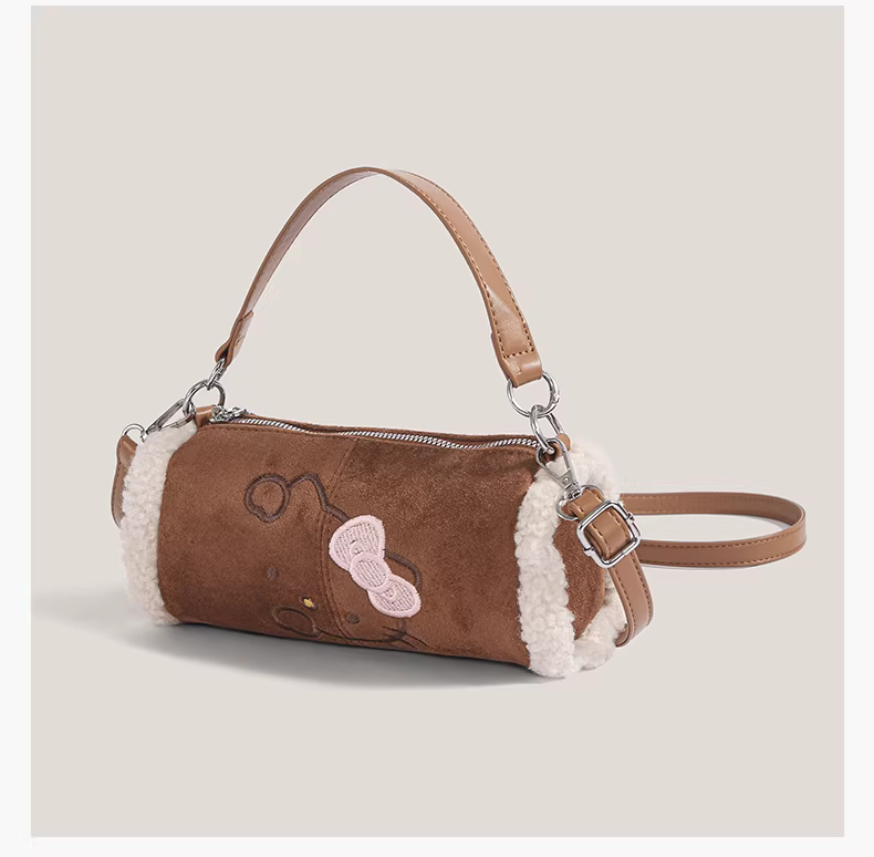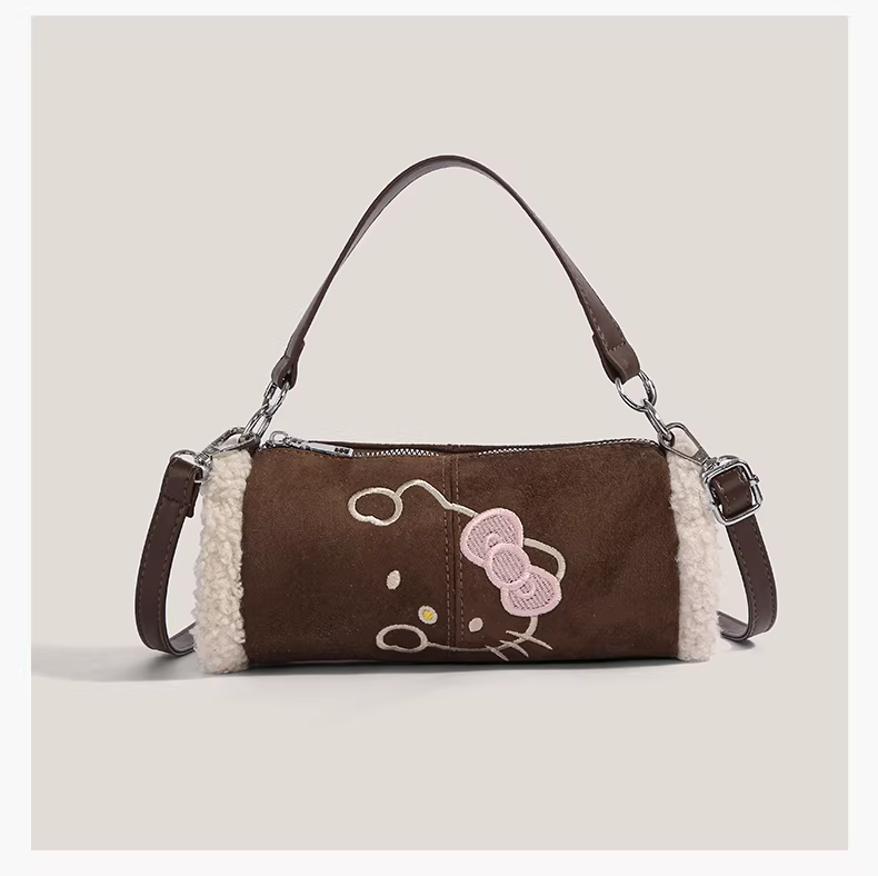 Túi Hello Kitty dễ thương dành cho nữ, mẫu mới 2025, phong cách retro thời thượng, túi hình trụ đeo vai/chéo
