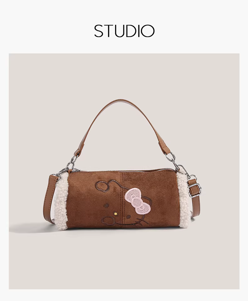 - Túi Hello Kitty dễ thương dành cho nữ, mẫu mới 2025, phong cách retro thời thượng, túi hình trụ đeo vai/chéo