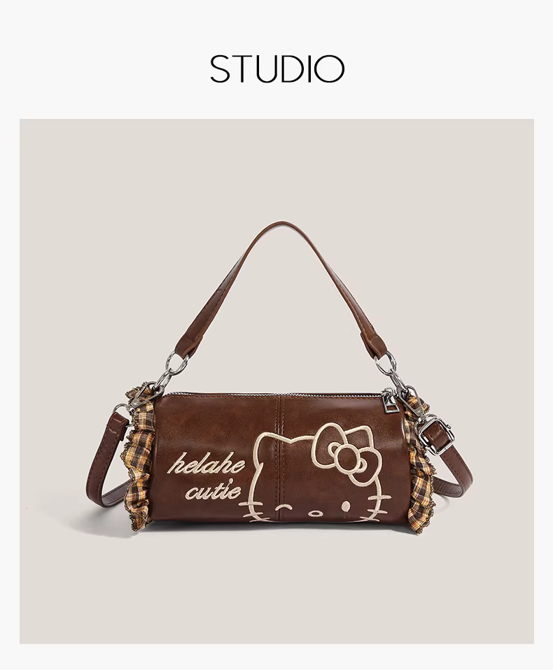 Túi Hello Kitty nữ 2025 mẫu mới thời thượng, túi xách Hello Kitty phong cách retro độc đáo, túi hình trụ đeo vai/chéo