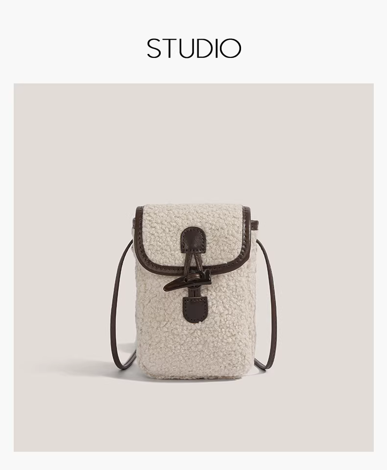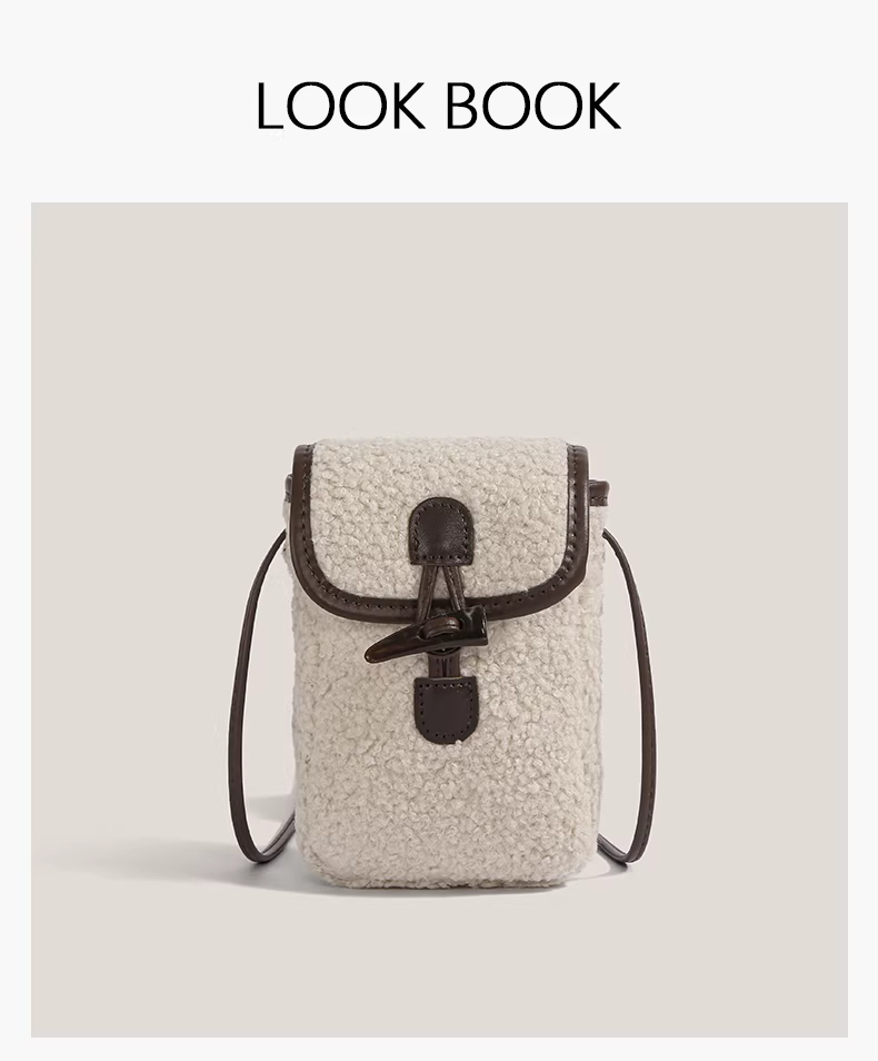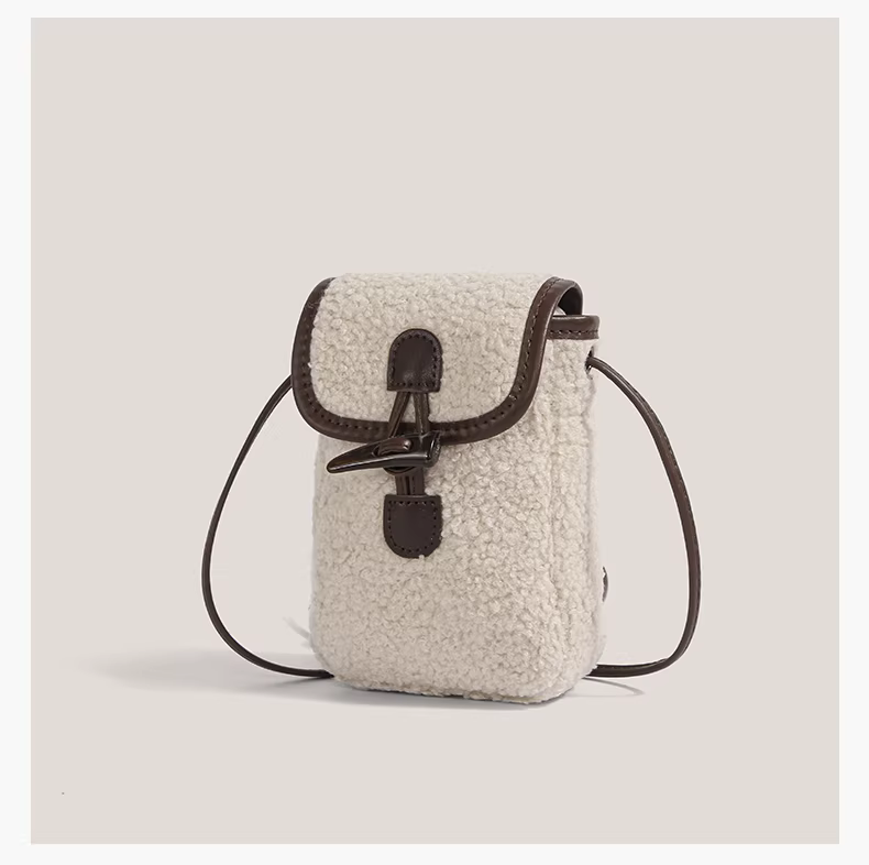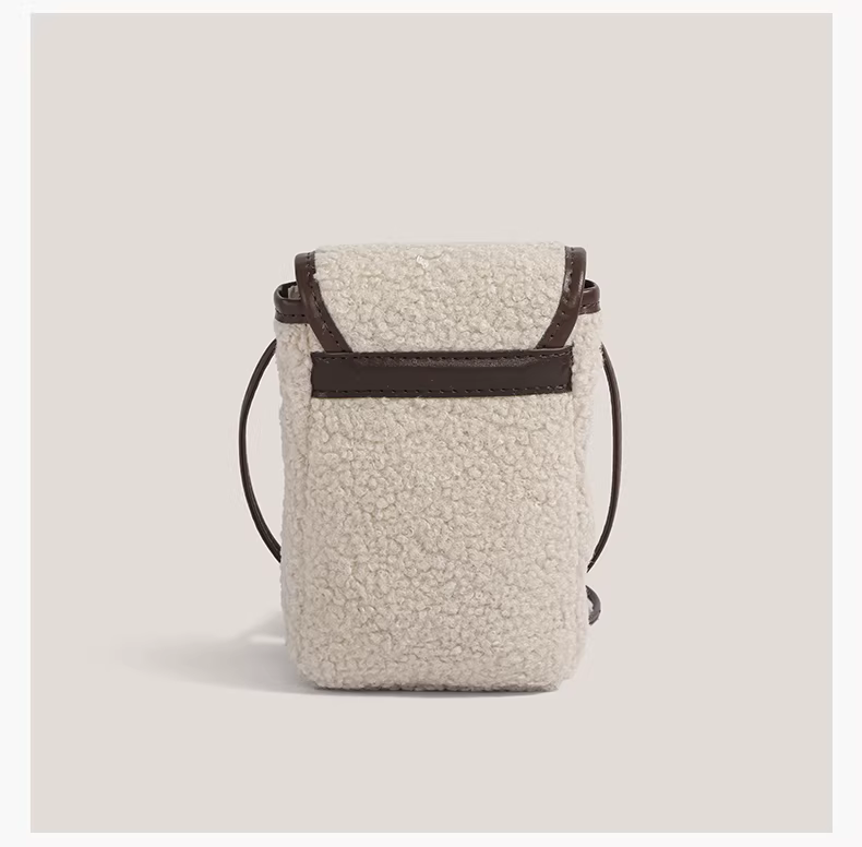 Túi lông cừu thiết kế độc đáo dành cho nữ, thời trang thu đông 2025, kiểu dáng nhỏ gọn, thời thượng, đeo chéo, đựng điện thoại.