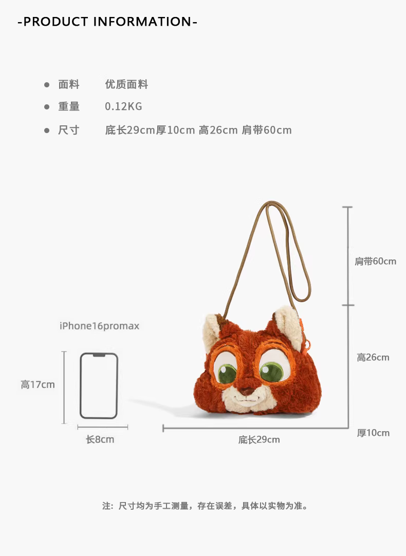 Túi lông thú Judy Nick Fox Zootopia 2026 mới dễ thương hoạt hình, đeo vai/chéo