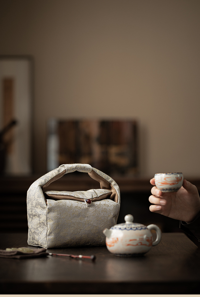 - Túi lưu trữ bông dệt hoa sen quấn túi đựng trà bộ trà gia dụng túi xách tay kiểu Trung Quốc túi đựng ấm trà ngoài trời túi đựng cốc trà