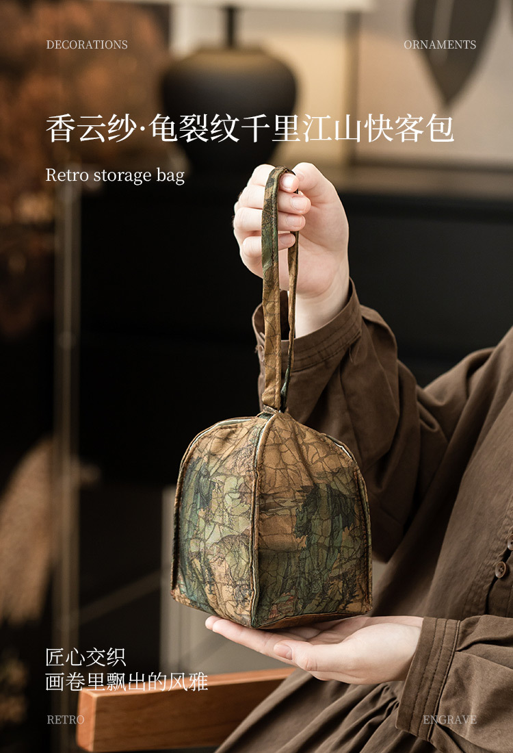 - Túi lưu trữ sợi Xiangyun Qianli Jiangshan Kuaike Túi xách ngoài trời Túi đựng trà Trung Quốc Túi du lịch Túi xách tay