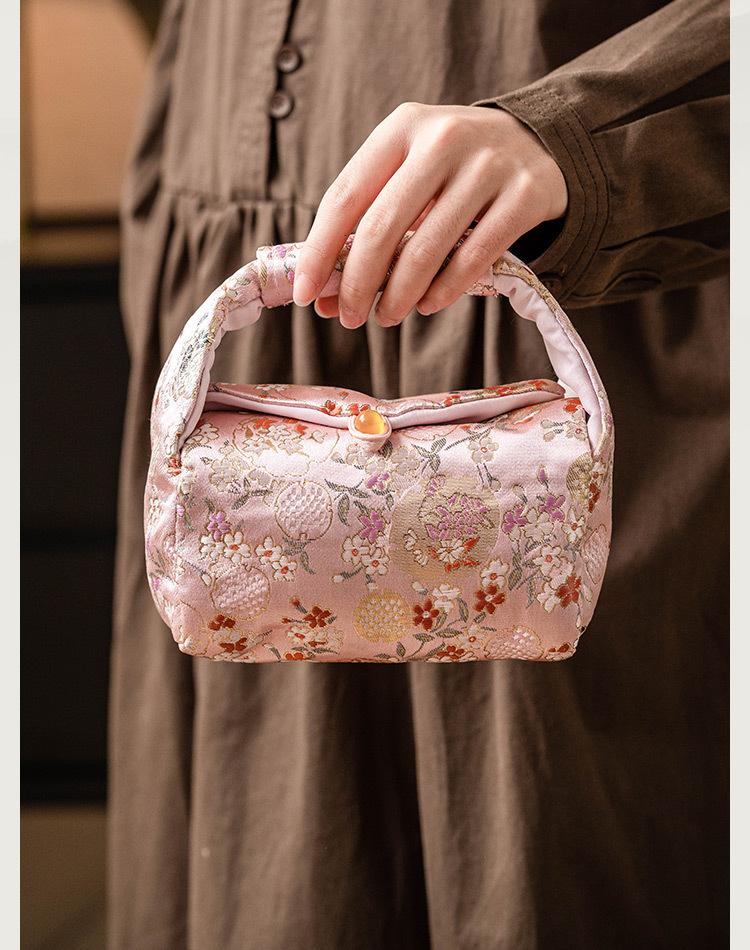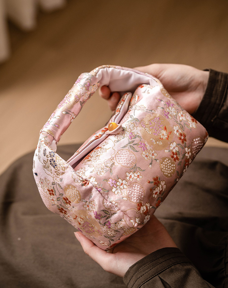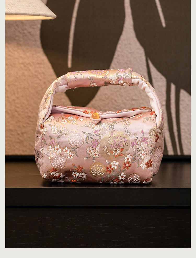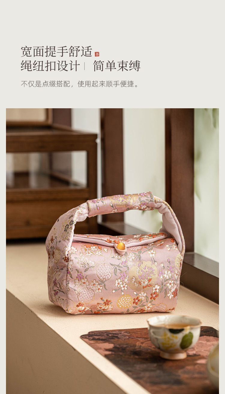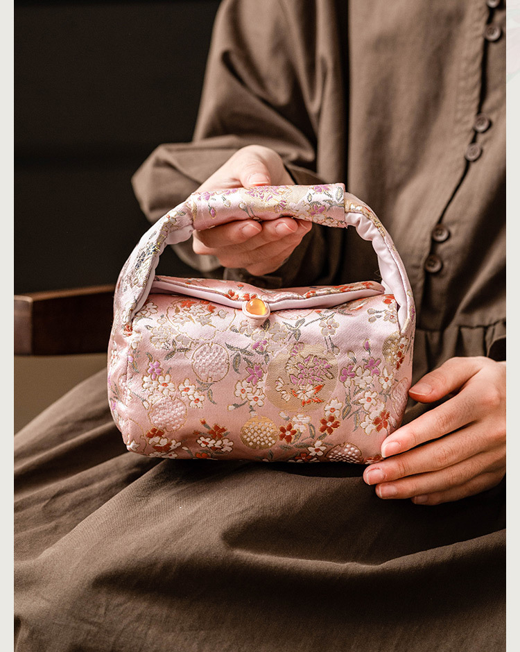 Túi lưu trữ thổ cẩm hoa thạch anh màu hồng túi xách nữ giá trị cao túi xách cắm trại ngoài trời túi xách tay túi trà thủ công