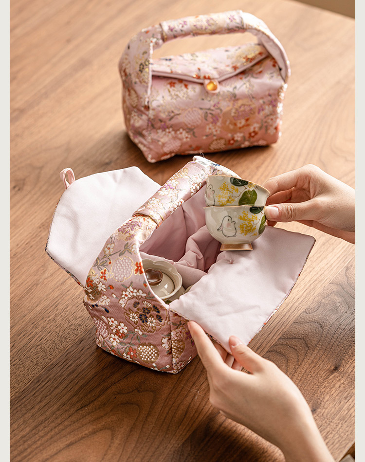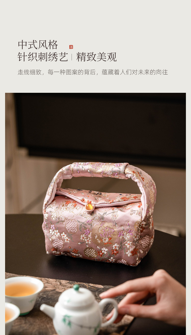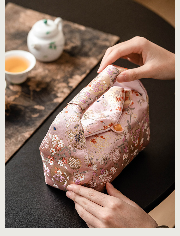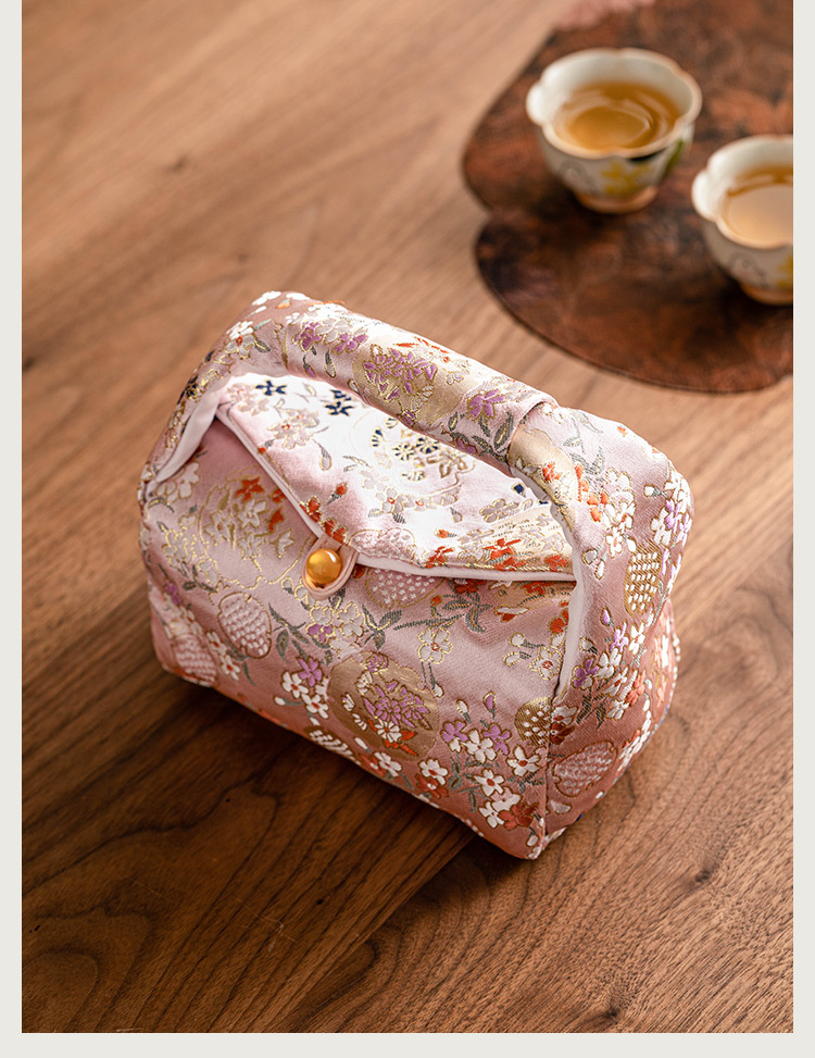 Túi lưu trữ thổ cẩm hoa thạch anh màu hồng túi xách nữ giá trị cao túi xách cắm trại ngoài trời túi xách tay túi trà thủ công