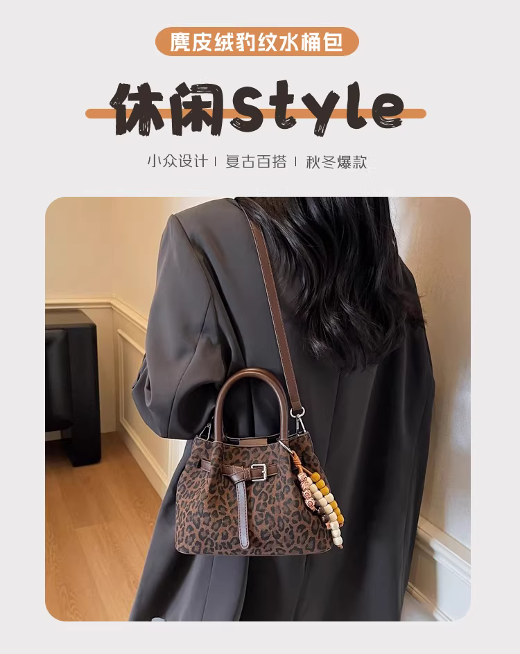- Túi nhỏ da lộn họa tiết báo dành cho nữ, phong cách vintage thu đông 2025, túi đeo chéo độc đáo, túi xách tay kiểu xô đang thịnh hành