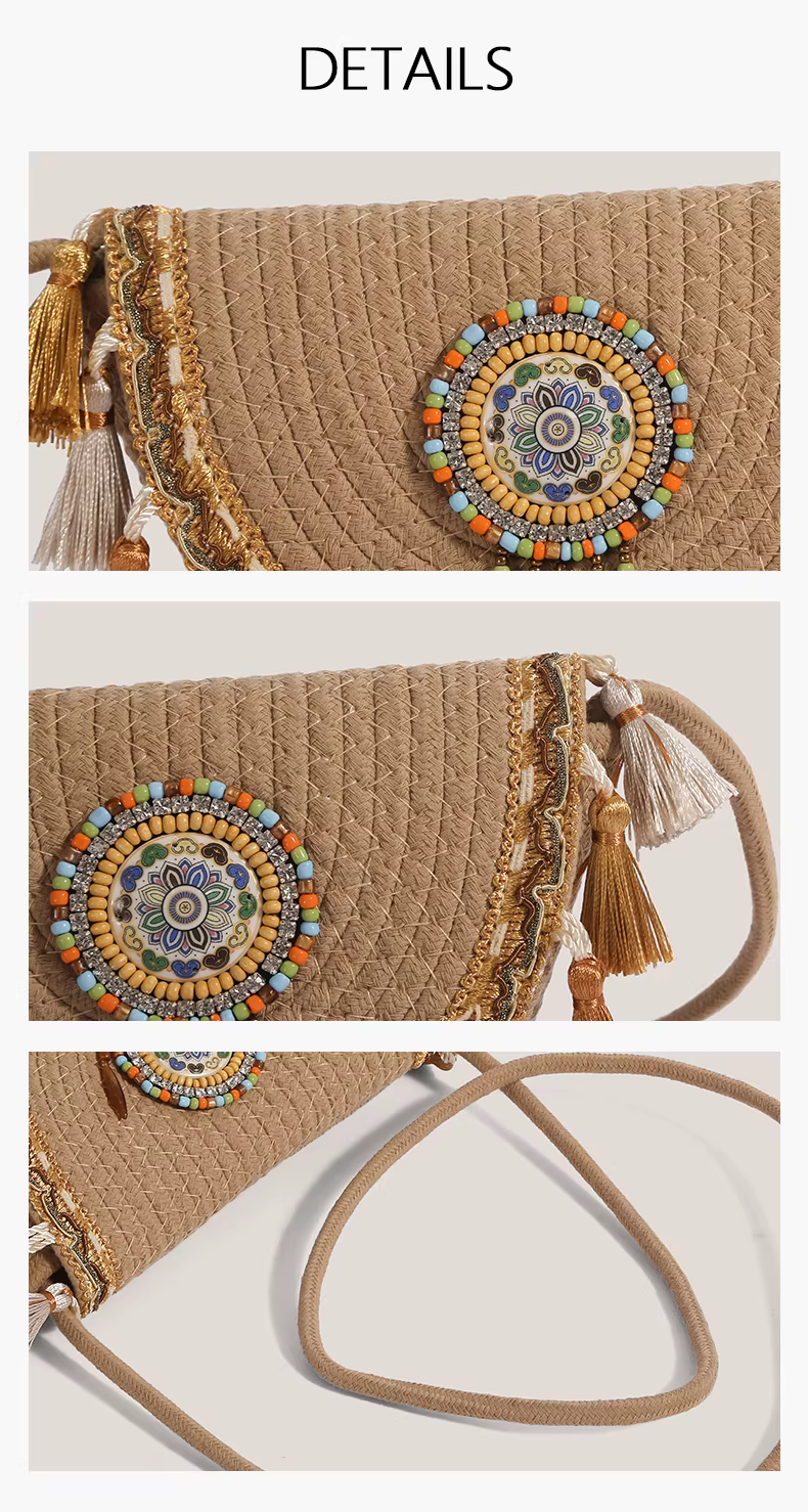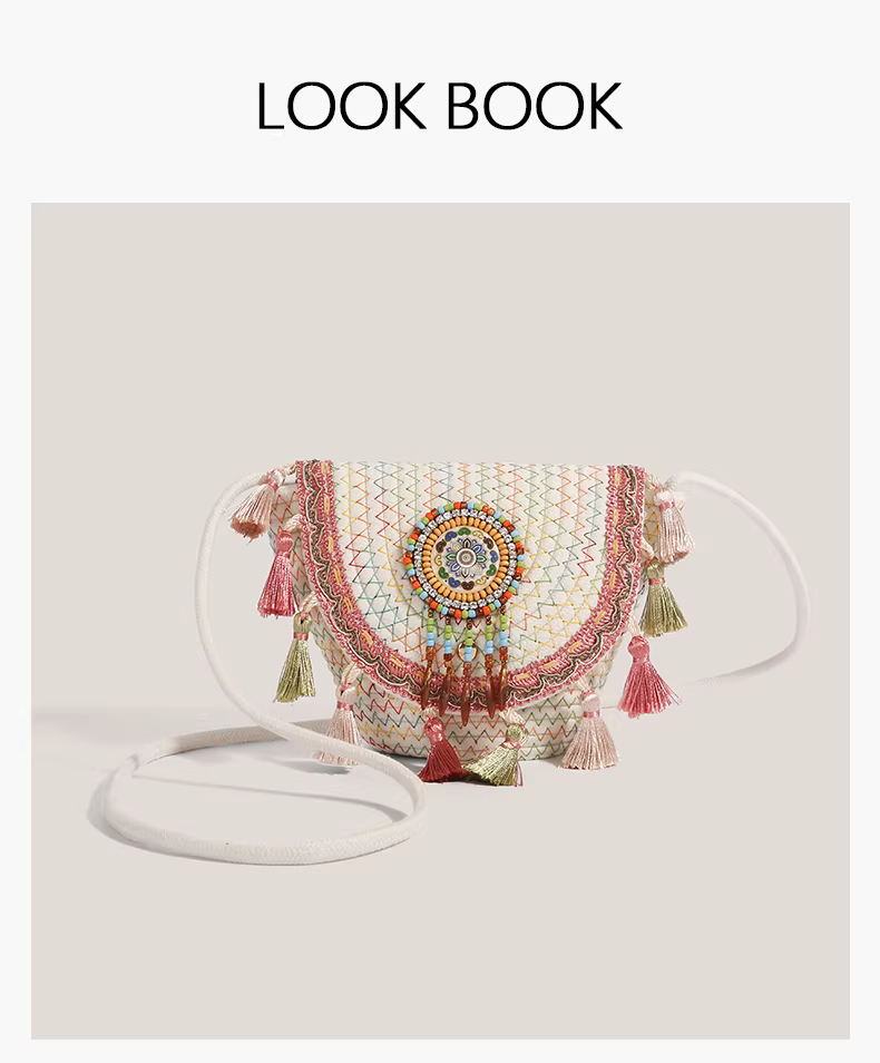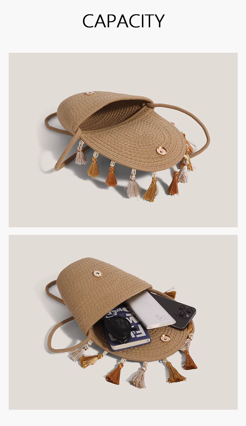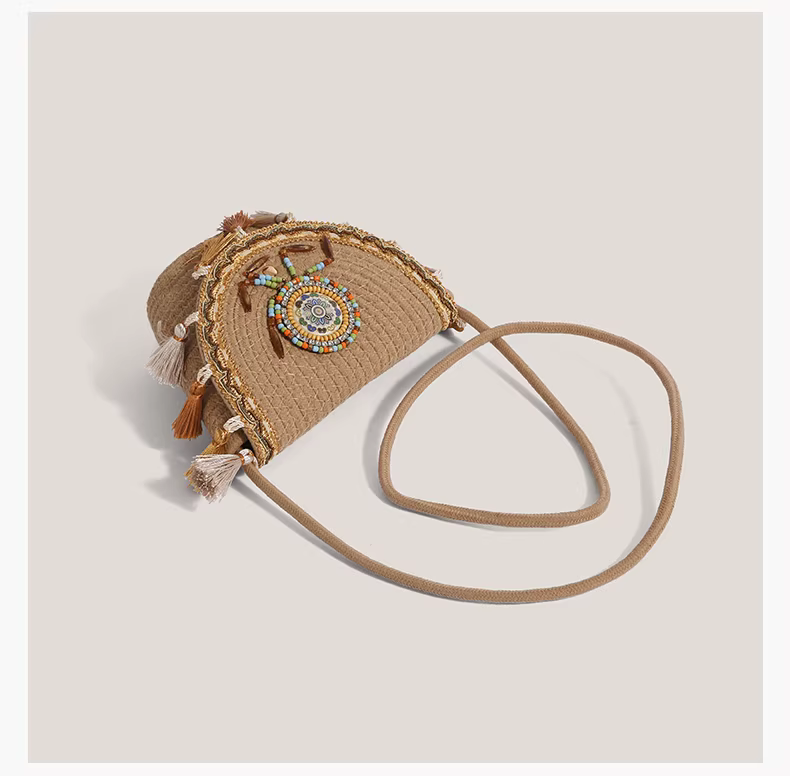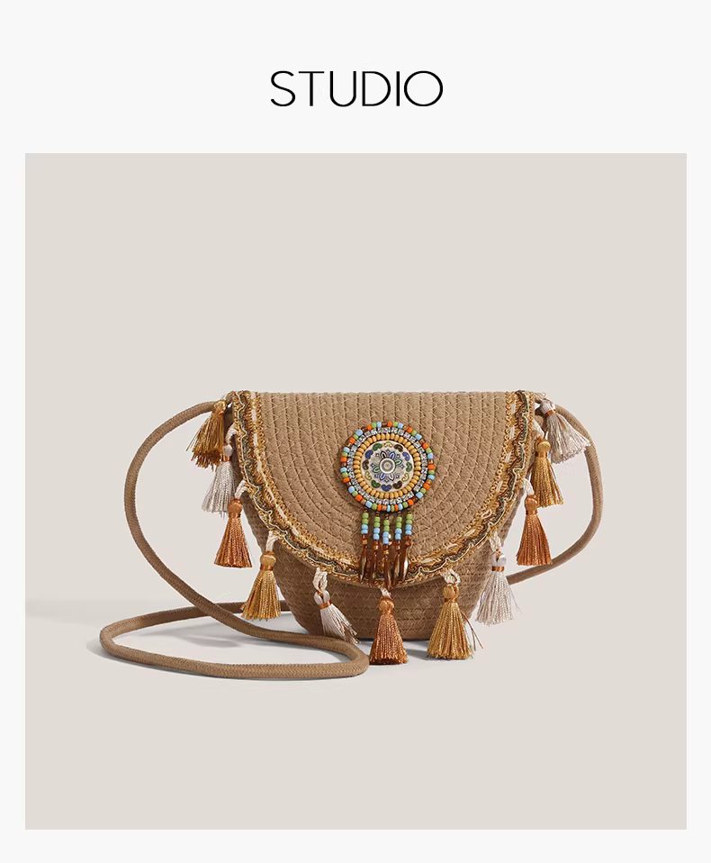 - Túi nhỏ tua rua phong cách dân tộc dành cho nữ, mẫu mới 2025, túi đeo vai chéo dệt kiểu xô cao cấp, độc đáo