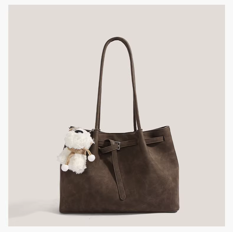 Túi tote da lộn retro dành cho nữ, mẫu mới 2025, túi đeo nách thời trang, đa năng, dung tích lớn, túi đeo vai