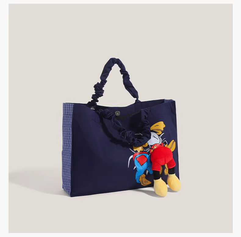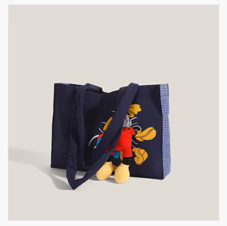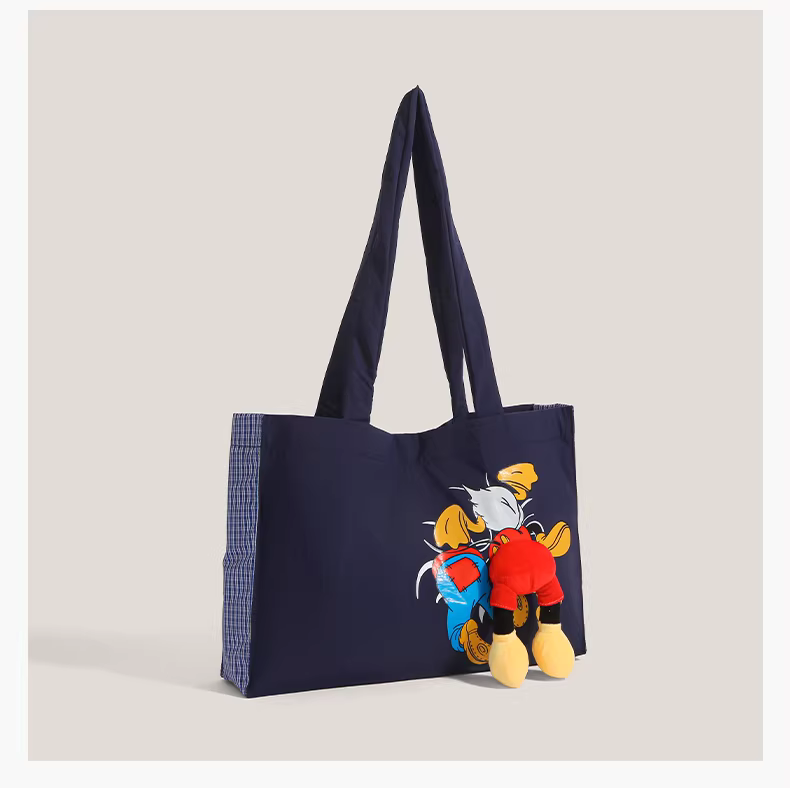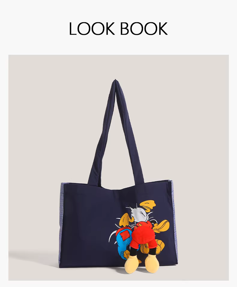- Túi tote denim Hàn Quốc phong cách graffiti dễ thương dành cho nữ, mẫu mới 2025, dung tích lớn, túi đeo vai hình mông vịt Donald