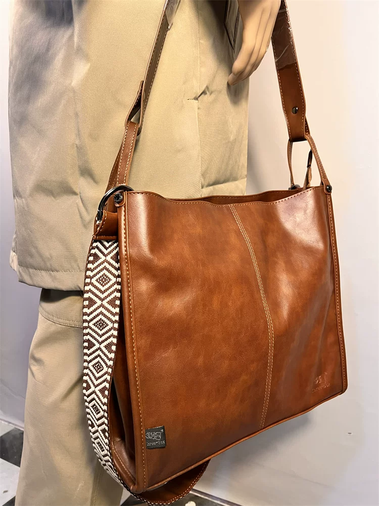 - Túi tote đi làm phong cách đường phố unisex Túi đeo chéo Nhật Bản và Hàn Quốc Túi đeo vai đa năng Túi xách da mềm Ba lô du lịch