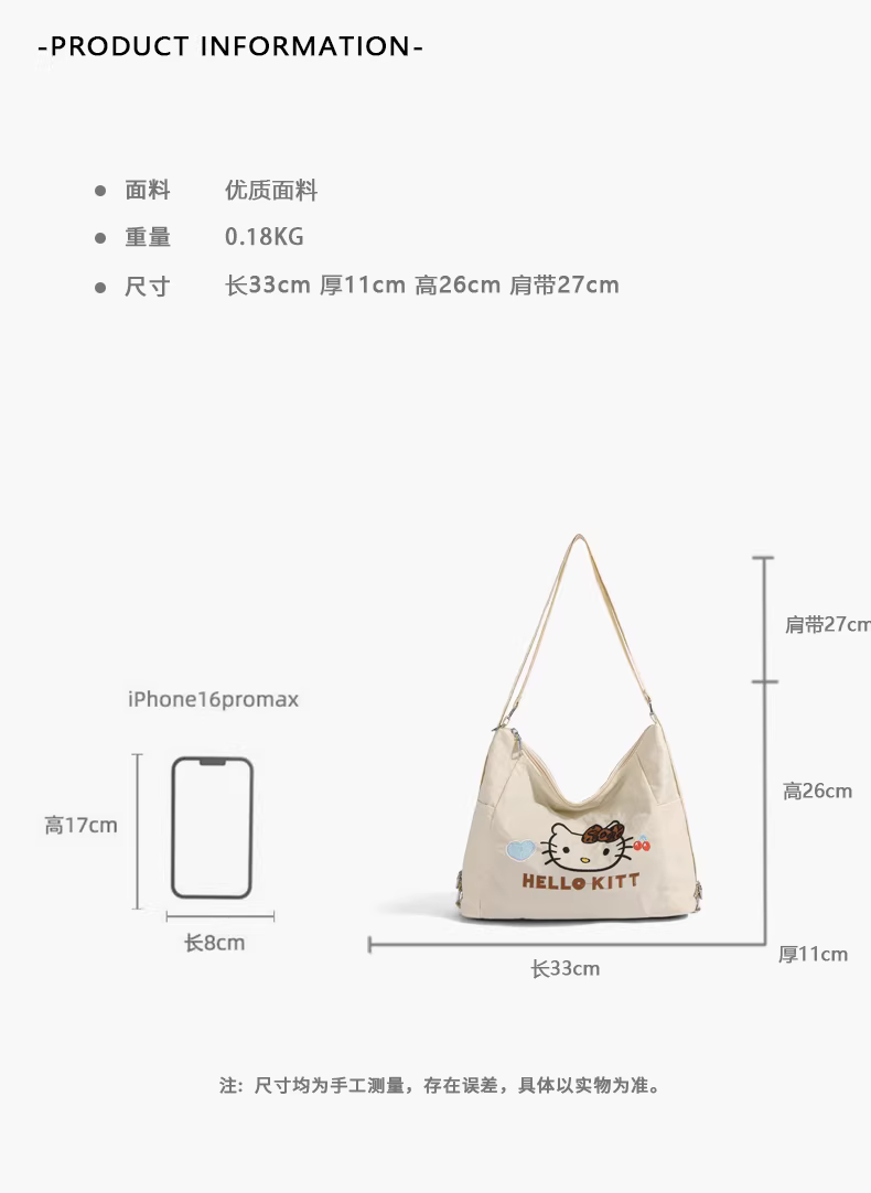 - Túi tote Hello Kitty dễ thương dành cho nữ, mẫu mới 2025, hoạt hình Hello Kitty, dung tích lớn, đeo vai, có thể làm ba lô