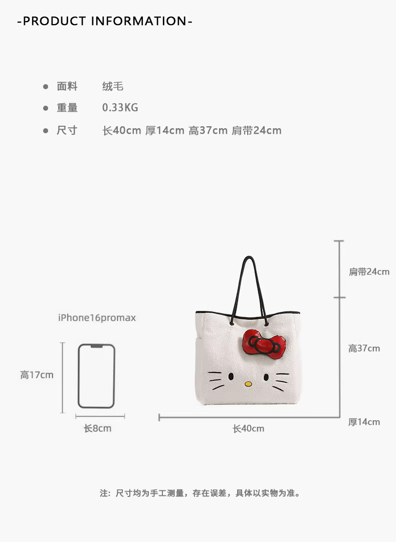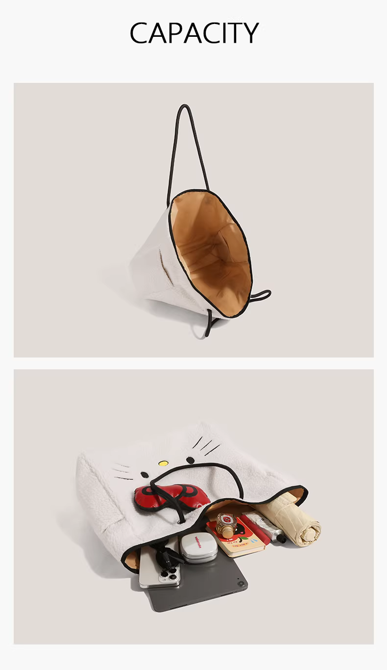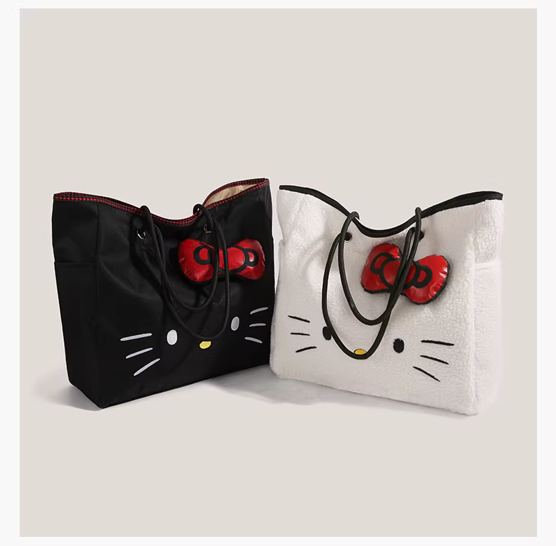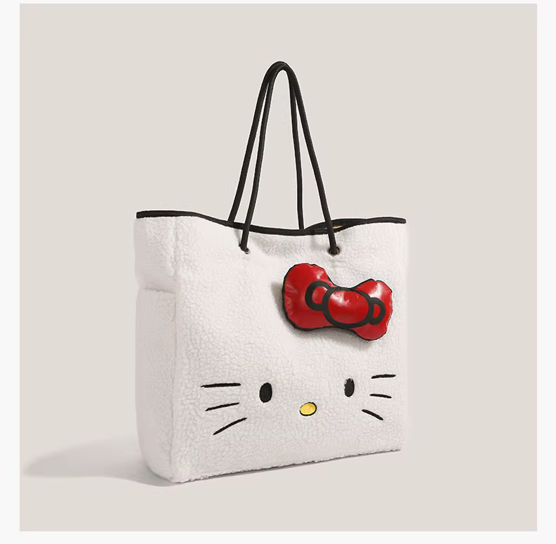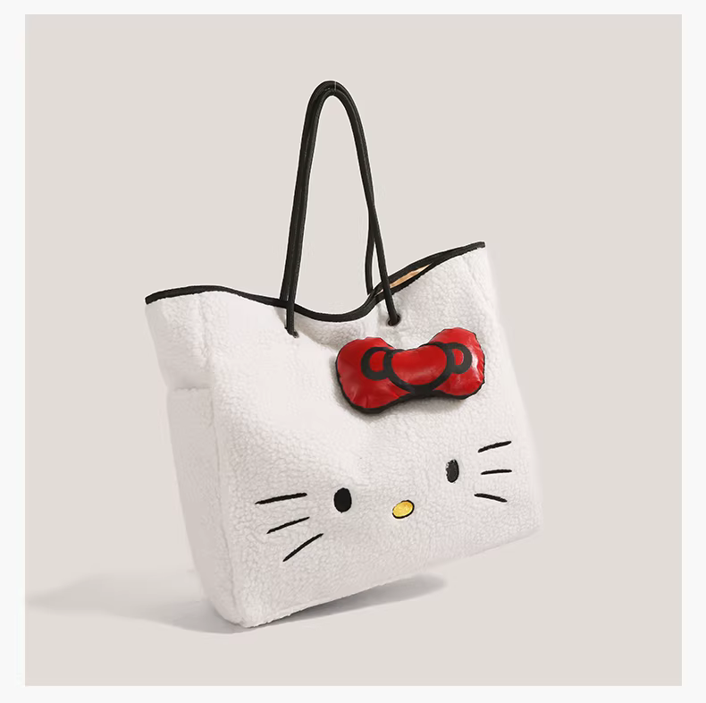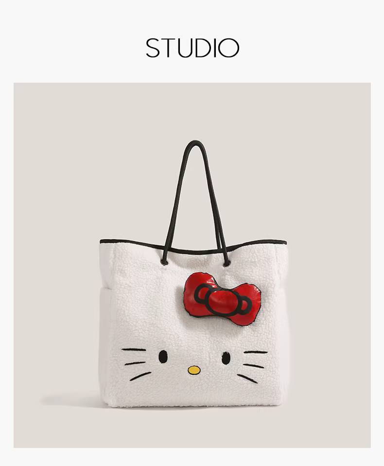 - Túi tote len cừu Hello Kitty dễ thương dành cho nữ, mẫu mới 2025, thời trang hoạt hình Hello Kitty, dung tích lớn, đeo vai