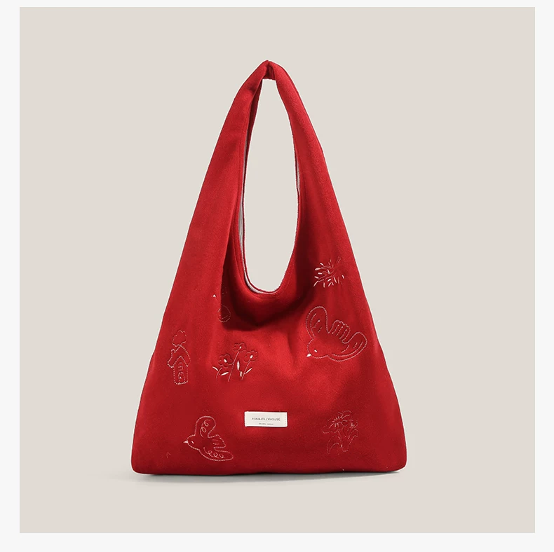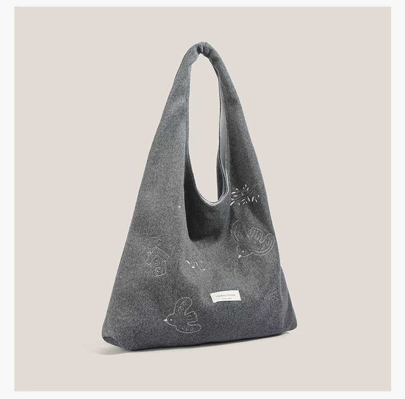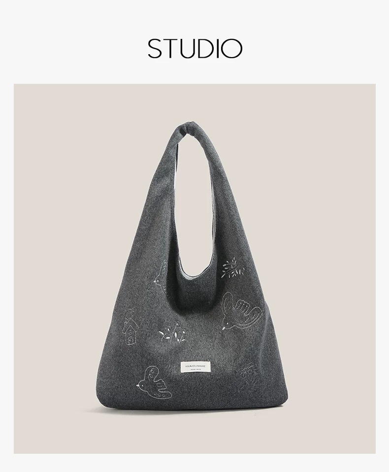 - Túi tote len thêu chim dành cho nữ 2026, mẫu mới, phong cách retro, dung tích lớn, túi đeo vai, túi kẹp nách
