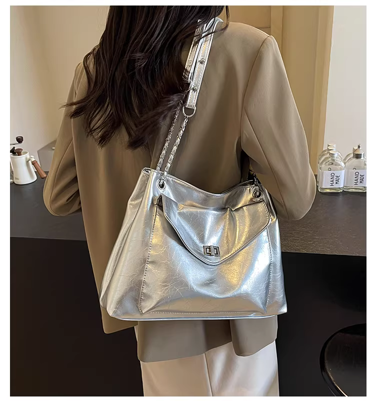 - Túi tote nữ, sức chứa lớn, mùa thu đông, đeo chéo được, kiểu mới 2025, phong cách giản dị, đa năng, túi đeo vai có dây xích, túi đi làm