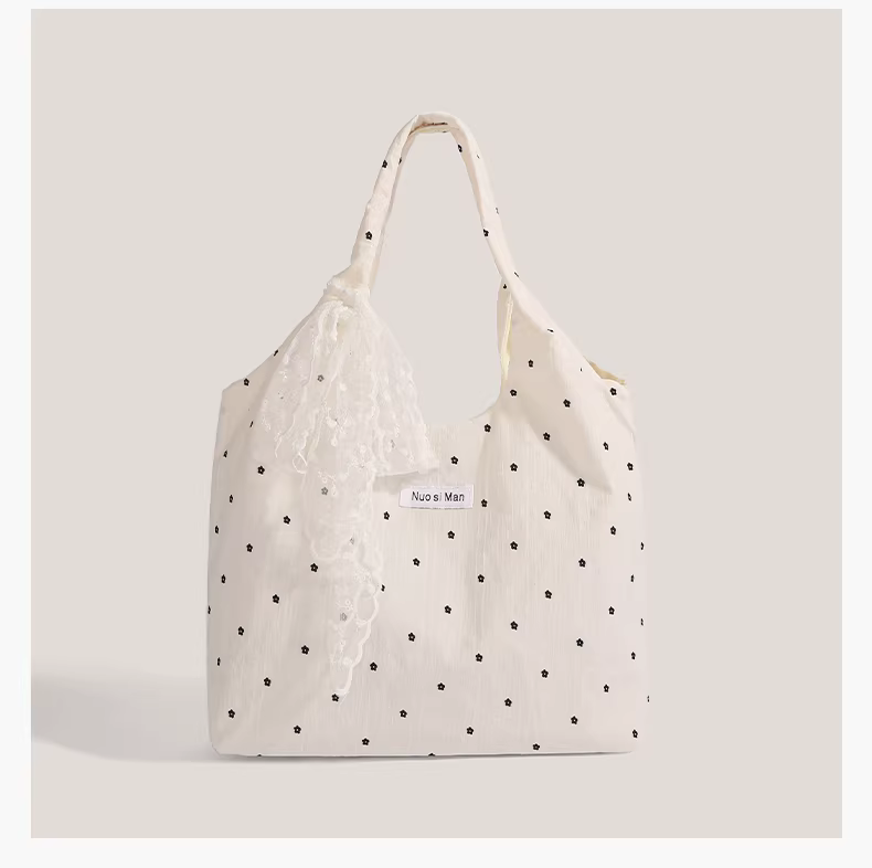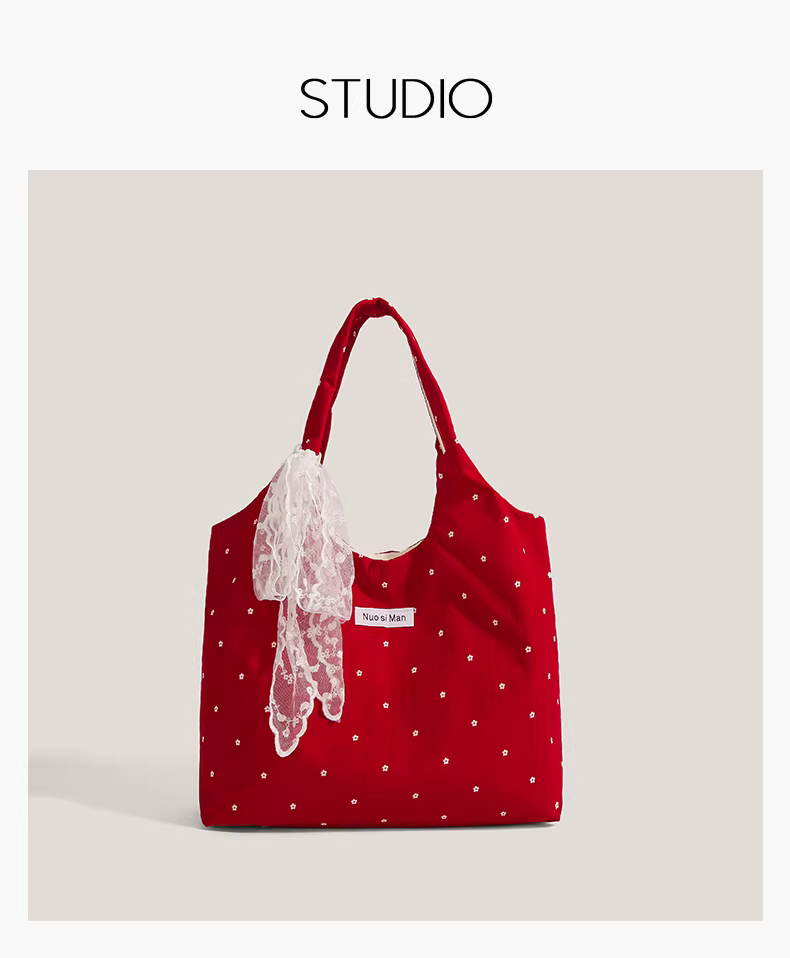 Túi vải bố kẻ sọc chấm bi đỏ độc đáo dành cho nữ, mẫu mới 2025, dung tích lớn, đeo vai, đi làm, đeo nách