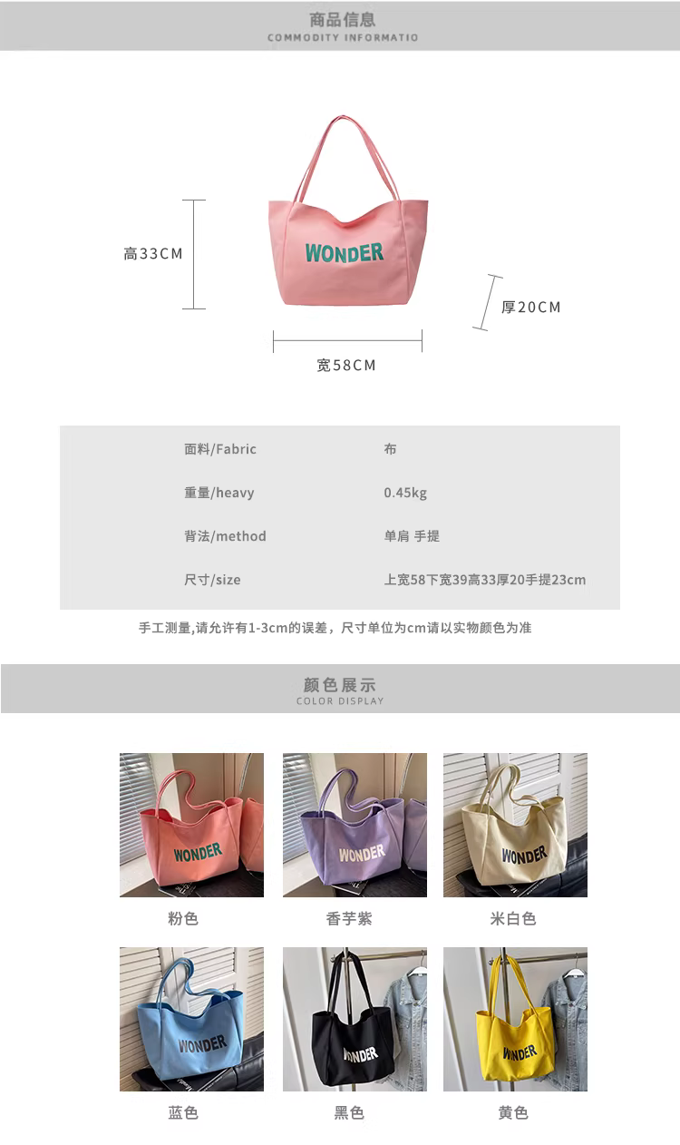 - Túi vải bố nữ, dung tích lớn, mẫu mới thu đông 2025, đa năng, đeo vai, đi chợ, đi làm, kiểu tote