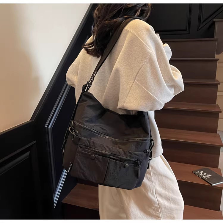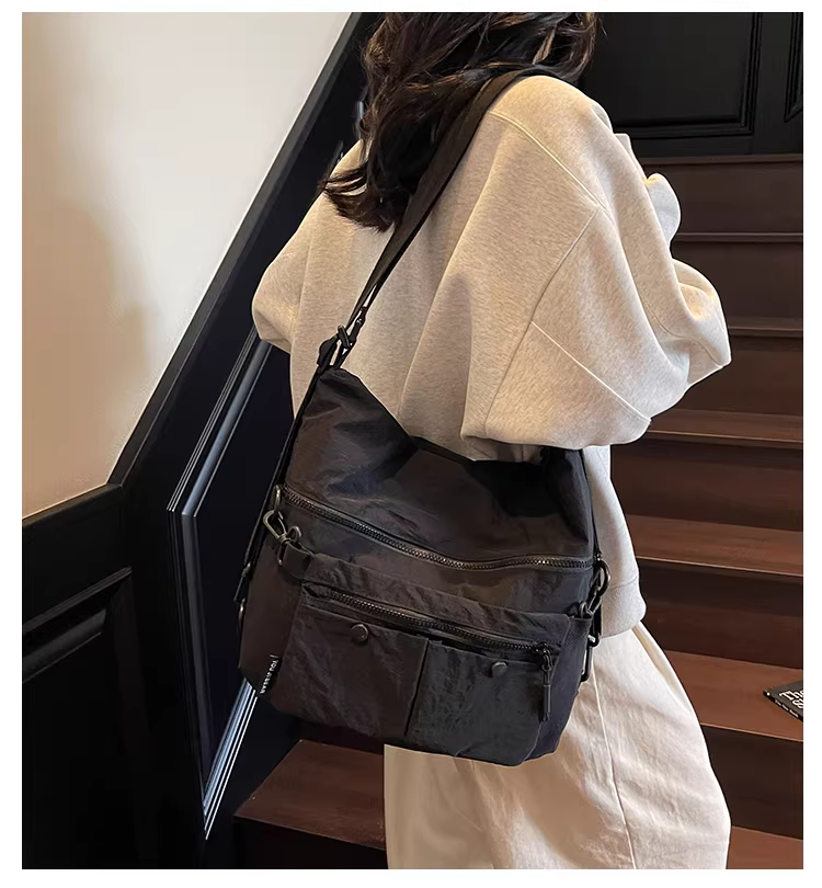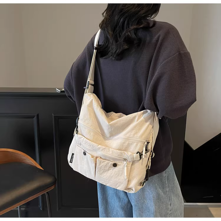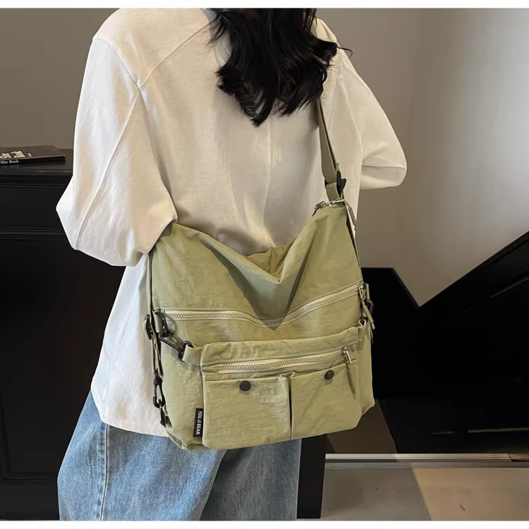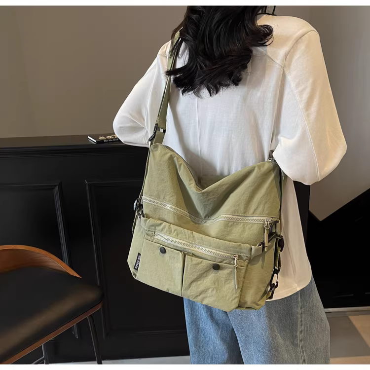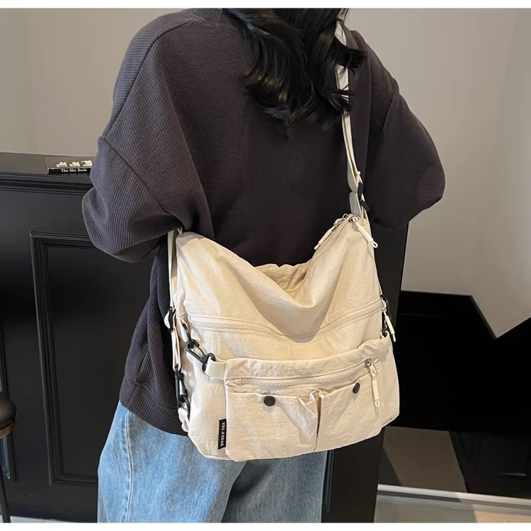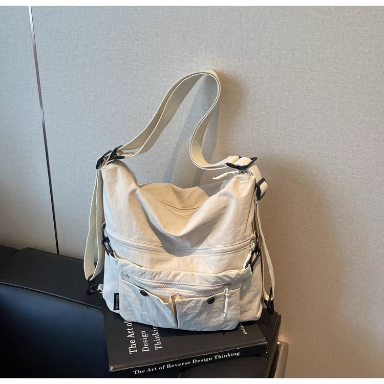 - Túi vải canvas dành cho nữ, sức chứa lớn, túi đeo chéo vai mùa hè mới 2025, ba lô đi làm đa năng phong cách Hàn Quốc giản dị