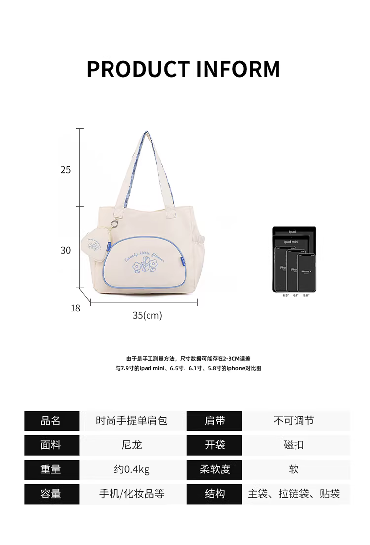- Túi vải canvas dung tích lớn dành cho nữ, túi tote thêu dễ thương, túi đeo vai đi học và đi làm