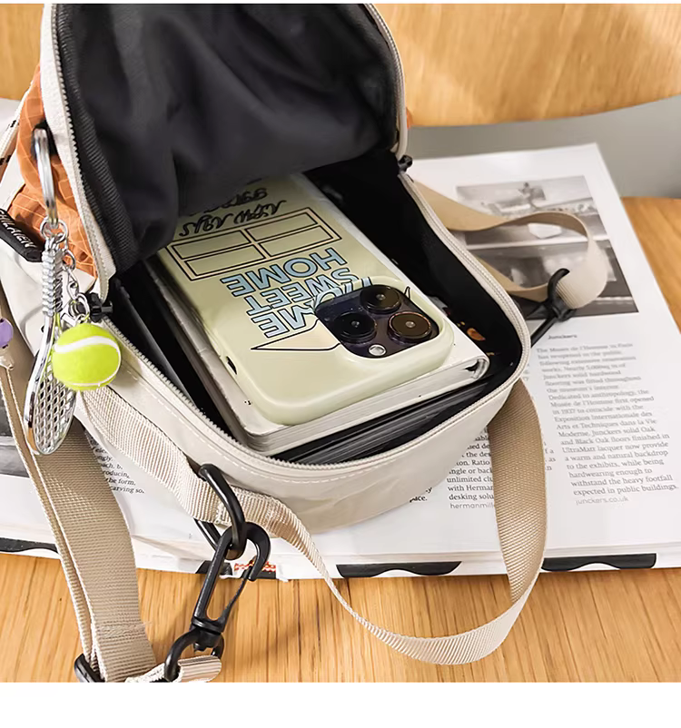 Túi vải canvas nữ, kiểu mới hè 2025, thiết kế độc đáo, phối màu, túi đeo chéo, balo mini thể thao dã ngoại.