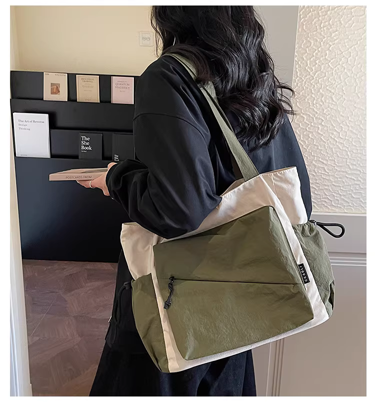 - Túi vải canvas phối màu dành cho nữ, dung tích lớn, mẫu mới thu đông 2025, đa năng và thời trang, túi đeo vai, túi tote đi học.