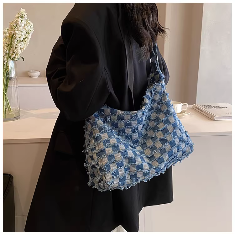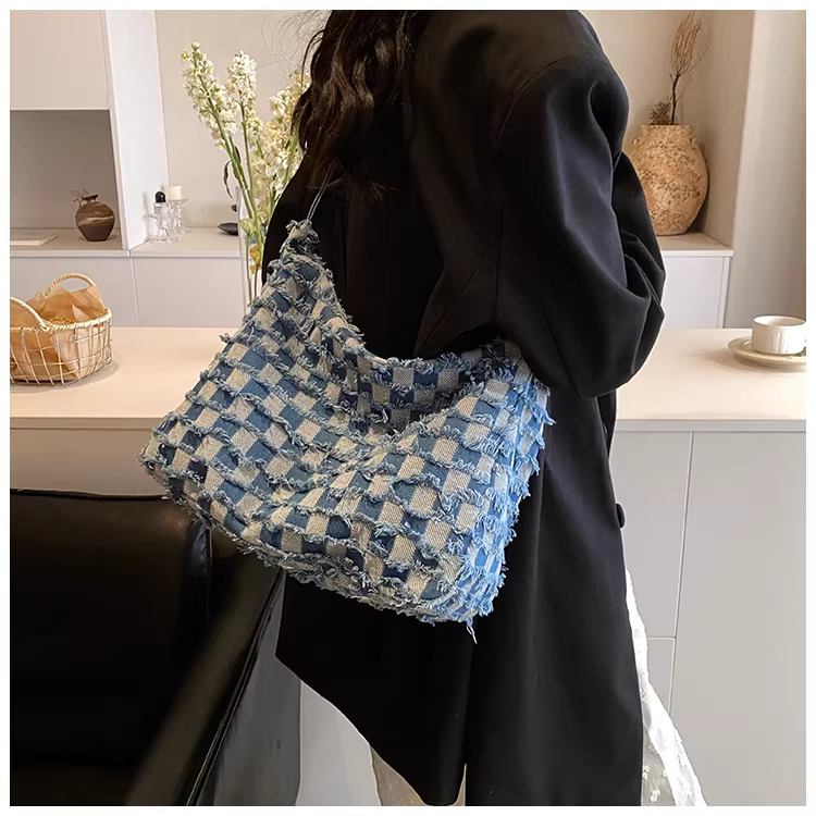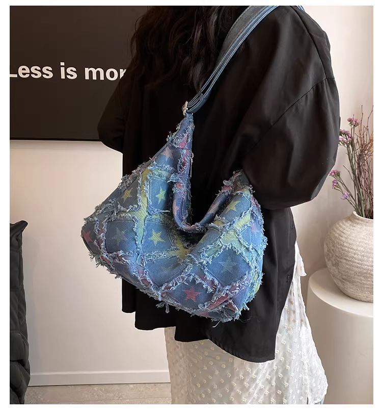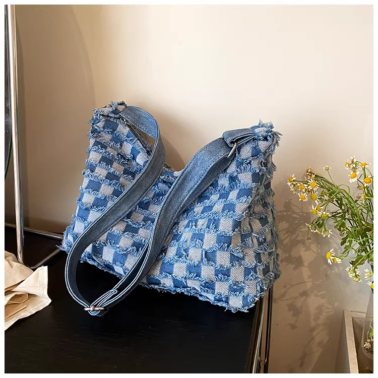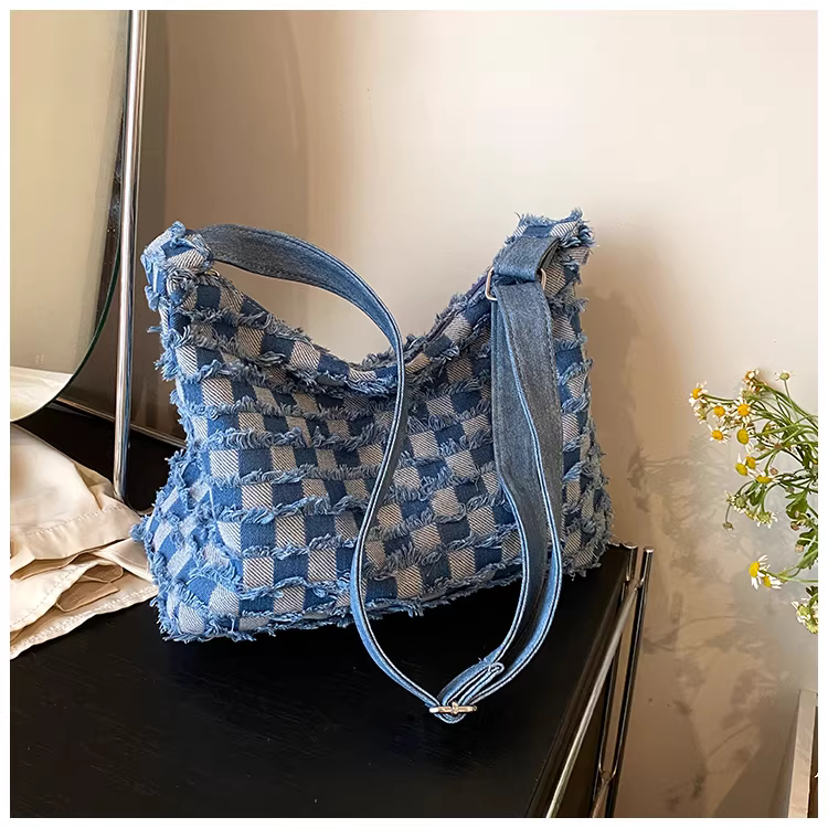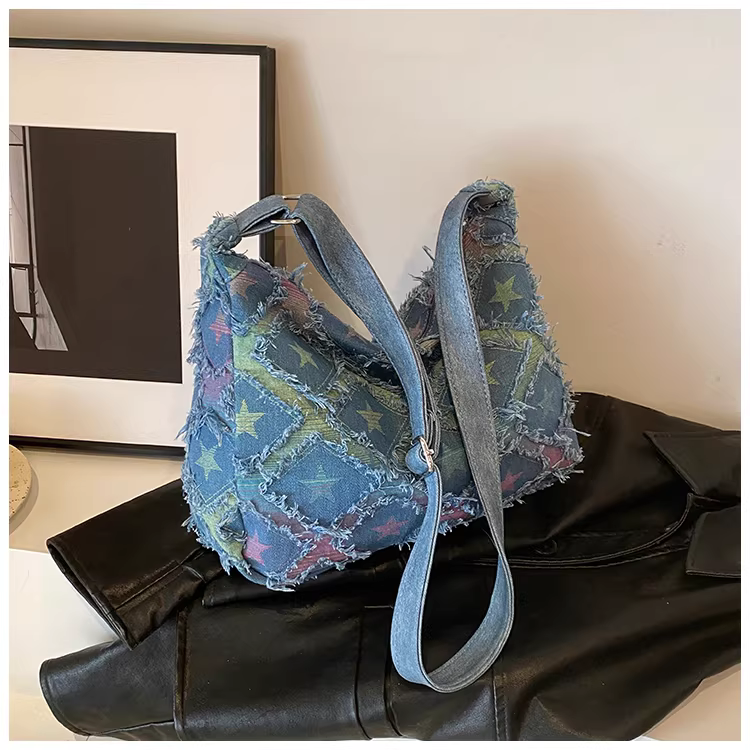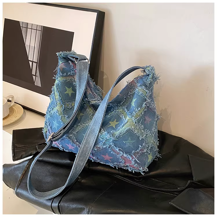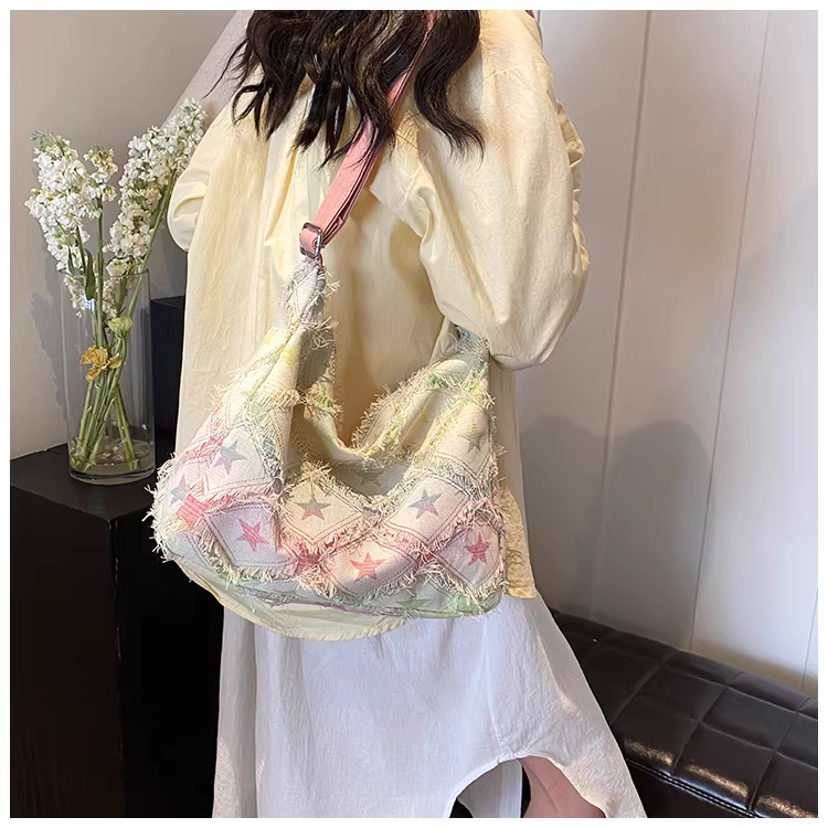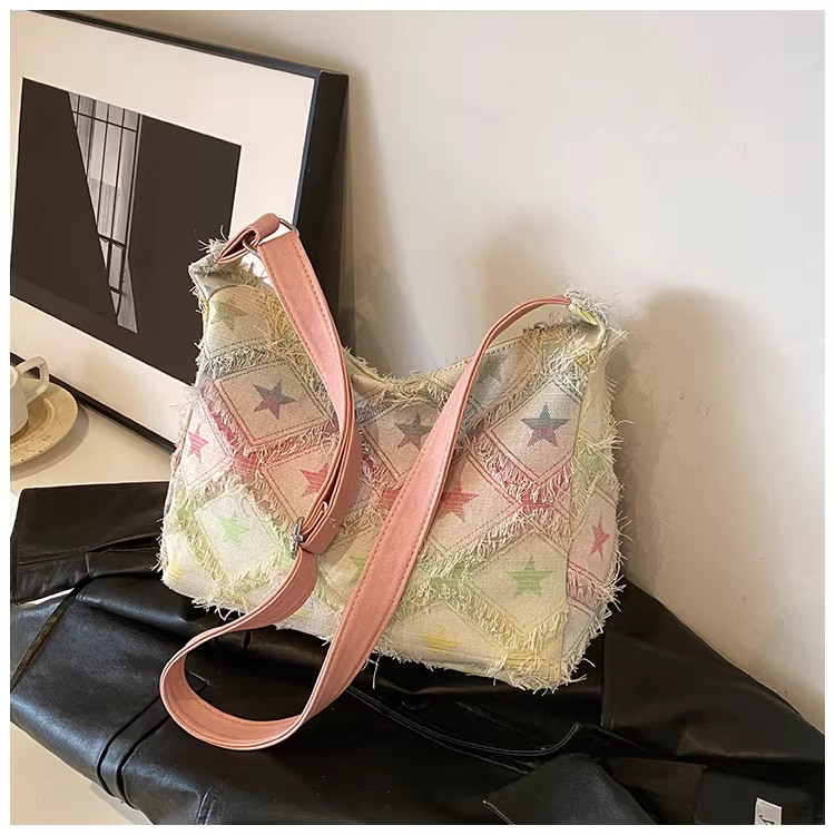 - Túi vải denim nữ đeo chéo mẫu mới thu đông 2025 màu hồng, thiết kế độc đáo cao cấp, phong cách giản dị