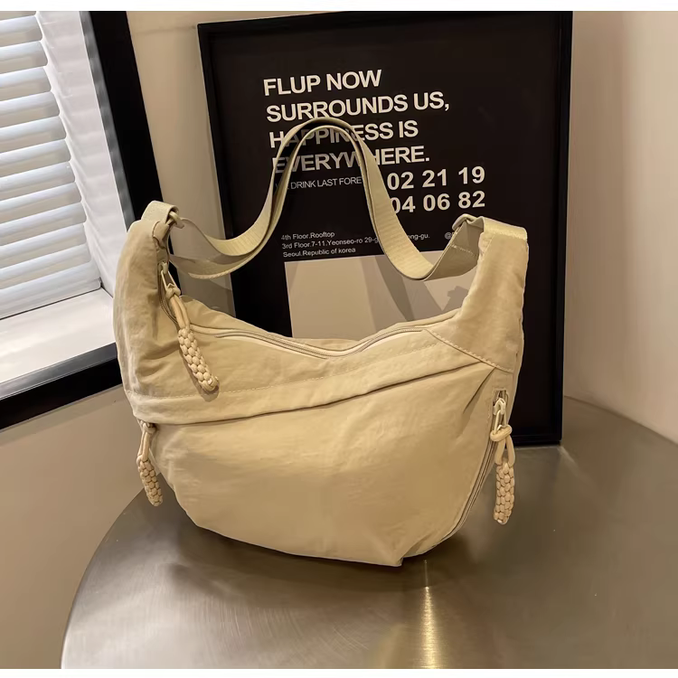 - Túi vải nhẹ dành cho nữ, mẫu mới thu đông 2025, thiết kế độc đáo, đa năng, đeo vai, đeo chéo, kiểu dáng bánh bao
