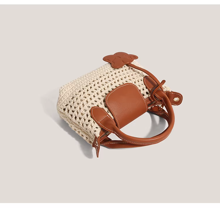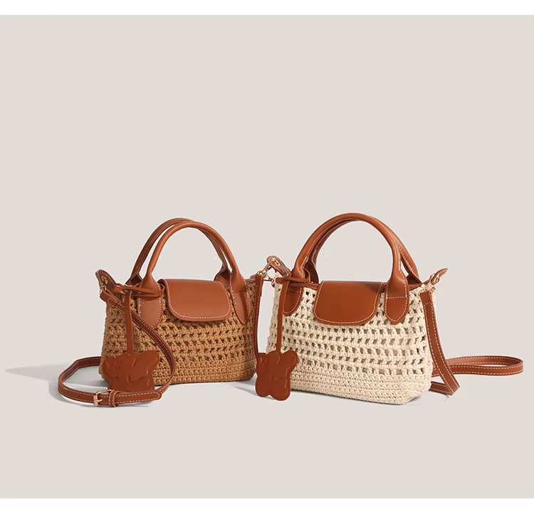 - Túi xách dệt thủ công dành cho nữ 2025, mẫu mới mùa hè, túi móc len, túi đi biển, túi đeo vai, túi đeo chéo