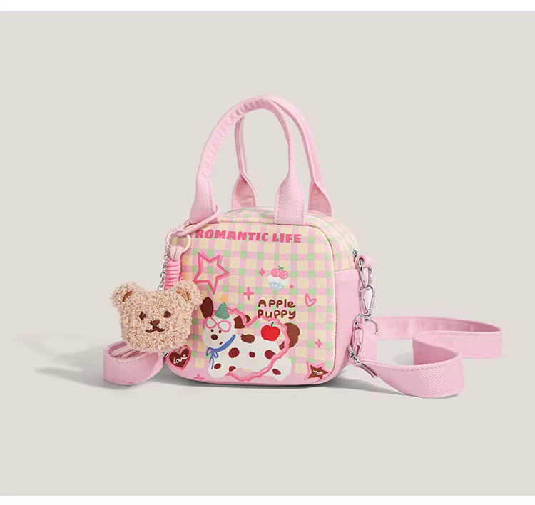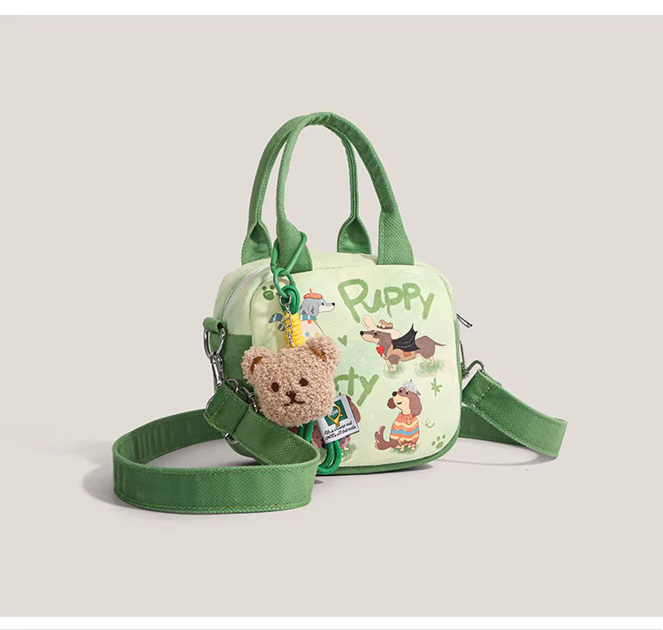 - Túi xách dự tiệc hình chó con dành cho nữ 2025, thiết kế độc đáo dễ thương đa năng, chất liệu canvas, đeo vai/chéo.
