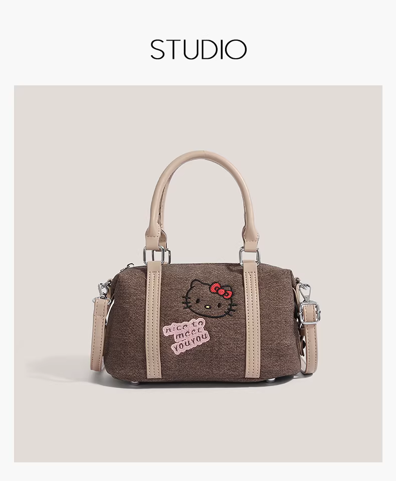 - Túi xách Hello Kitty dễ thương dành cho nữ 2025, kiểu dáng retro thời trang, túi đeo chéo đa năng, phong cách giản dị
