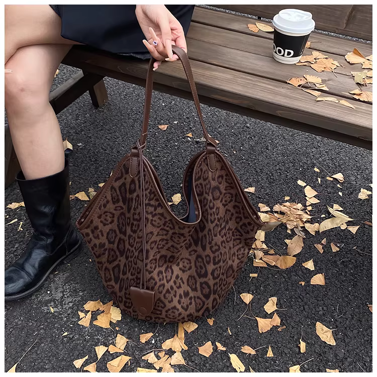 - Túi xách họa tiết da báo dành cho nữ, sức chứa lớn, túi đeo vai đơn phong cách retro mờ mùa thu đông 2025 mới, túi mẹ và con gái, túi tote đi làm