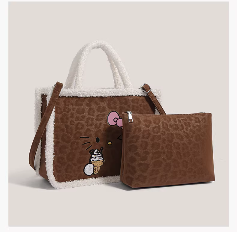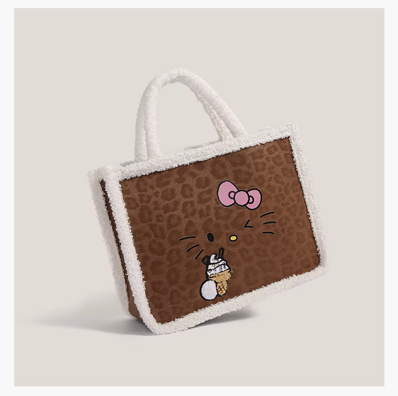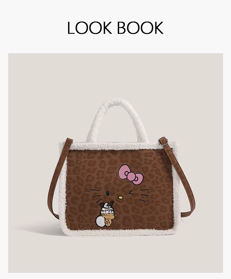 - Túi xách len cừu Hello Kitty dễ thương, kiểu dáng độc đáo, mùa thu đông 2025, đeo chéo một bên vai, dung tích lớn, kiểu túi tote